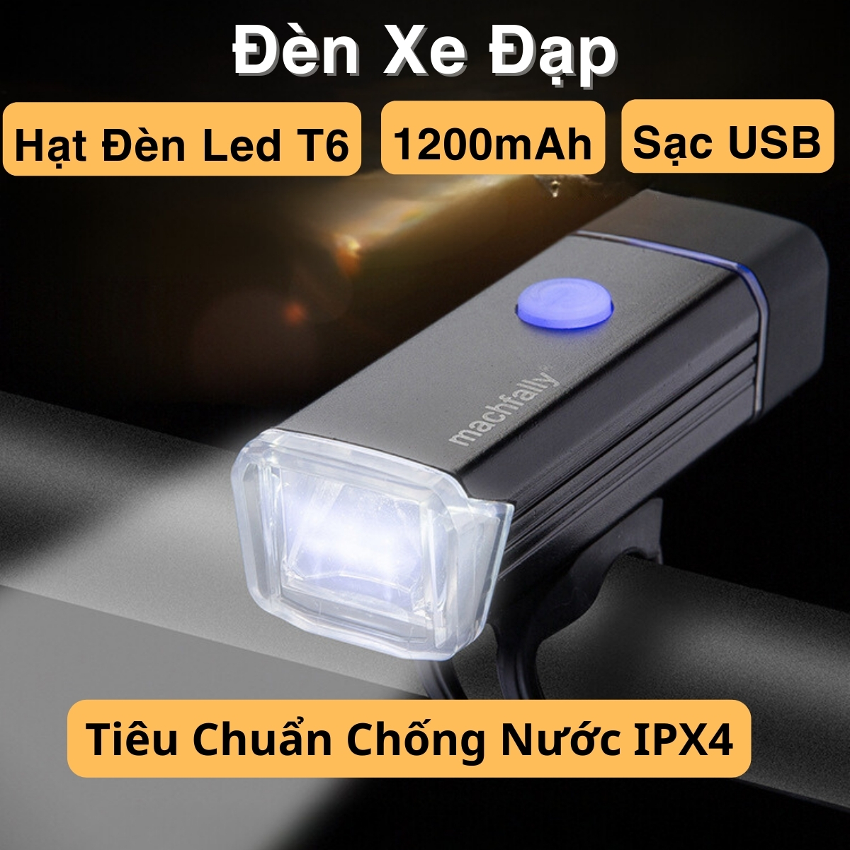 - Đèn xe đạp thể thao dược cung cấp năng lượng bởi công nghệ LED mới nhất với 200 lumen, sử dụng đèn LED T6, 4 chế độ chiếu sáng tùy chọn phù hợp mọi cung đường bạn di chuyển THÔNG SỐ SẢN PHẨM ĐÈN LED XE ĐẠP: Khoảng cách chiếu xạ: 200m