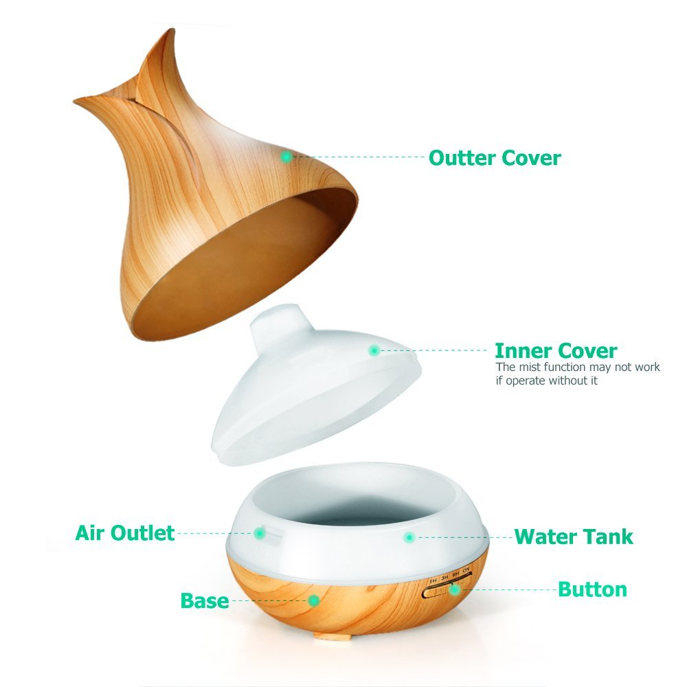 - Màu sắc: Gỗ sáng, gỗ tối Kích thước: 17*17*21.8cm Chất liệu: Nhựa ABS Dung tích: 400ml Trọng lượng: 800g Công suất: 18W Diện tích khuếch tán: 30-35m2 Thời gian hoạt động: 8-10h Đèn led: