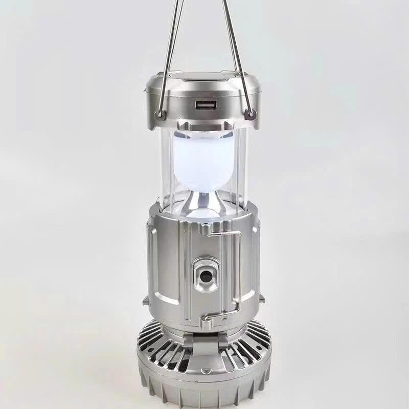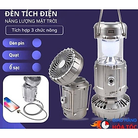 Đèn Pin Camping 3 in 1, Đèn Bão Du Lịch Sạc Năng Lượng Mặt Trời Có Quạt Kiêm Sạc Dự Phòng