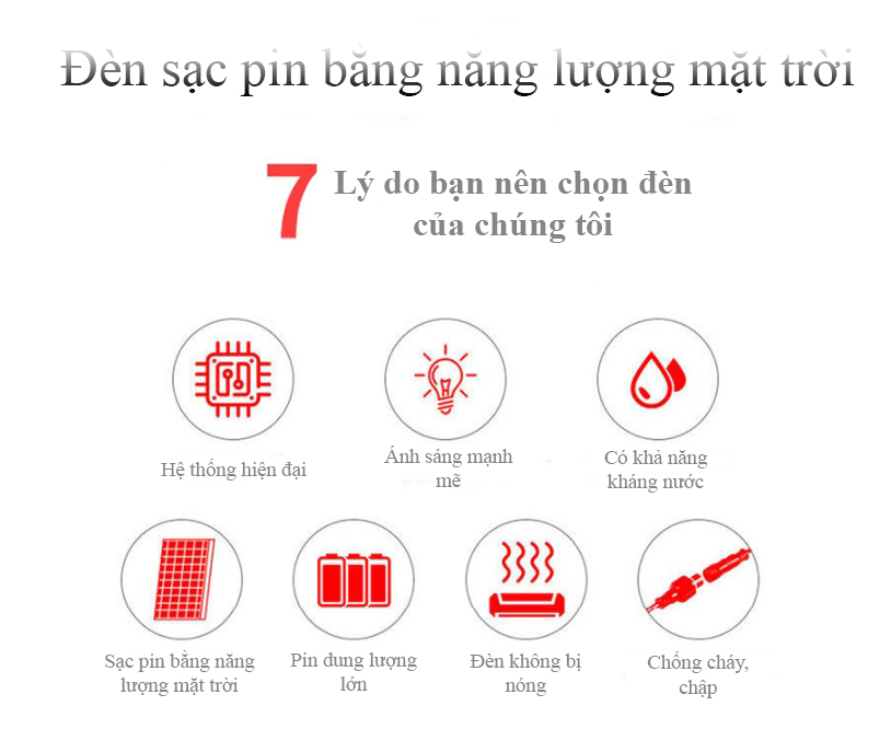 Ưu điểm sản phẩm + Có khả năng chiếu sáng: 10-12h liên tục. Sử dụng pin Lithium với độ bền cao. + Tuổi thọ đèn led > 50.000 giờ. Sử dụng bóng LED sáng trắng
