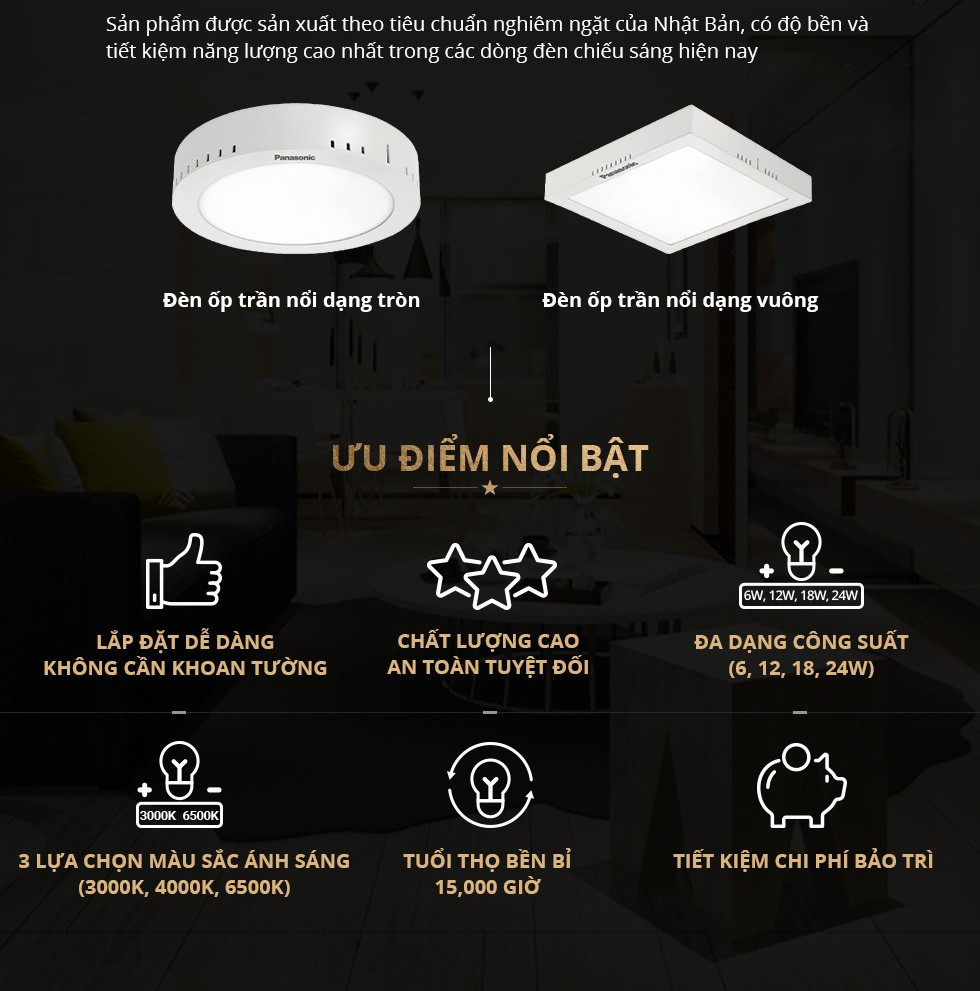 Mua tại TiktokĐèn ốp trần nổi Panasonic Surface Mounted ƯU ĐIỂM NỔI BẬT