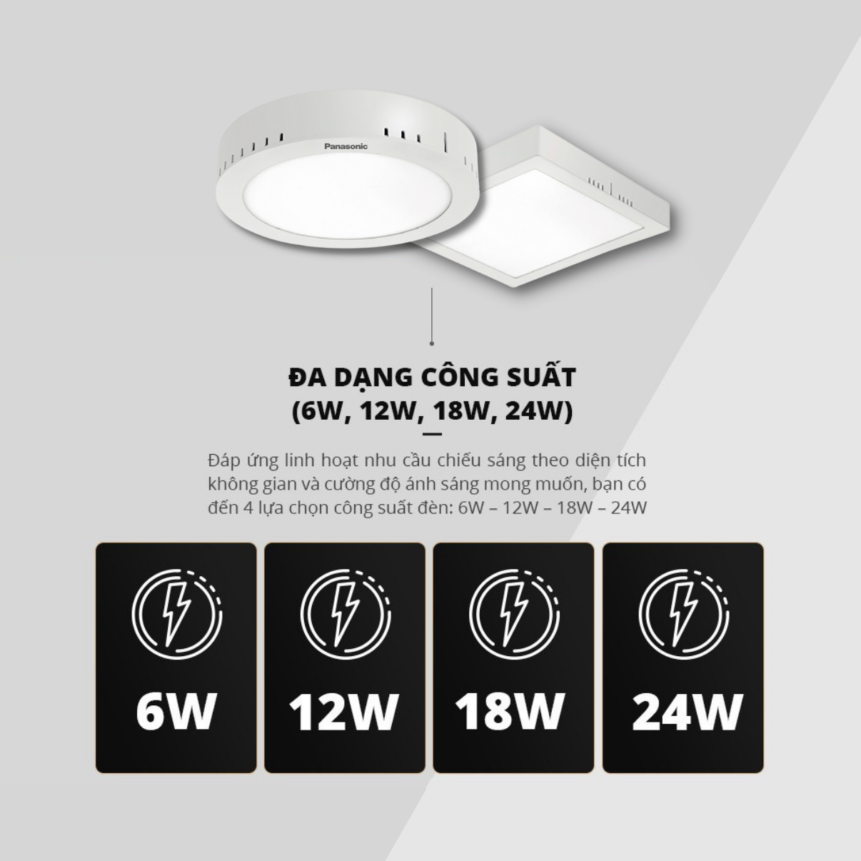 ✨Đèn ốp trần nổi Vuông Panasonic Surface Mounted Công suất 6W,12W,18W,24W