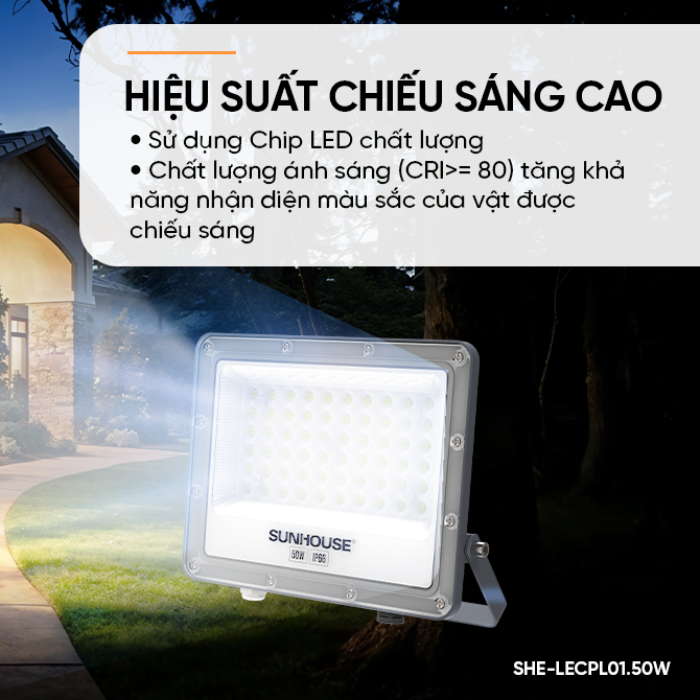 ✨Đèn Pha led ECO Sunhouse 50W SHE-LECPL01 Sử dụng Chip LED ,Tuổi thọ 25.000 giờ