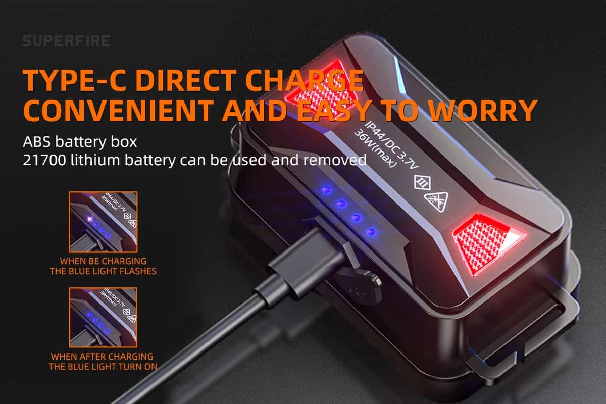 ✨Đèn pin đội đầu chính hãng Superfire HL60 - với thiết kế chóa lớn cùng bóng LED công suất cao 36W cho khả năng chiếu xa lên đến 400m cũng như sử dụng 2 pin sạc 21700 dung lượng lớn cho thời gian chiếu sáng đến 7H