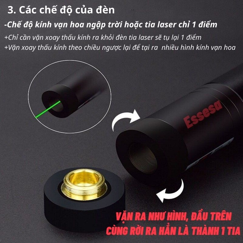 - Nhiệt độ lưu trữ: âm 10 độ C đến 40 độ C. LƯU Ý: MÀU SẮC, ĐỘ SẮC NÉT, ĐỘ BÓNG TRONG HÌNH ẢNH CÓ THỂ SAI KHÁC ĐÔI CHÚT SO VỚI HÌNH ẢNH THỰC TẾ DO HIỆU ỨNG ÁNH SÁNG KHI CHỤP ẢNH, QUÁ TRÌNH TÁCH NỀN VÀ HIỆU ỨNG TỪ CAMERA. MONG QUÝ KHÁCH THẤU HIỂU. Đèn pin LASER 303 là một sản phẩm có thiết kế gọn nhẹ, thông minh và vô cùng tiện lợi khi dùng cho nhiều mục đích khác nhau như đi du lịch, vui chơi, chỉ điểm, trình bày 1 ý tưởng hay thuyết trình ở một hội nghị lớn, Được thiết kế có khóa an toàn phía sau, giúp bảo vệ đèn pin, tránh những sơ sót đáng tiếc. Chân thành cảm ơn quý khách!