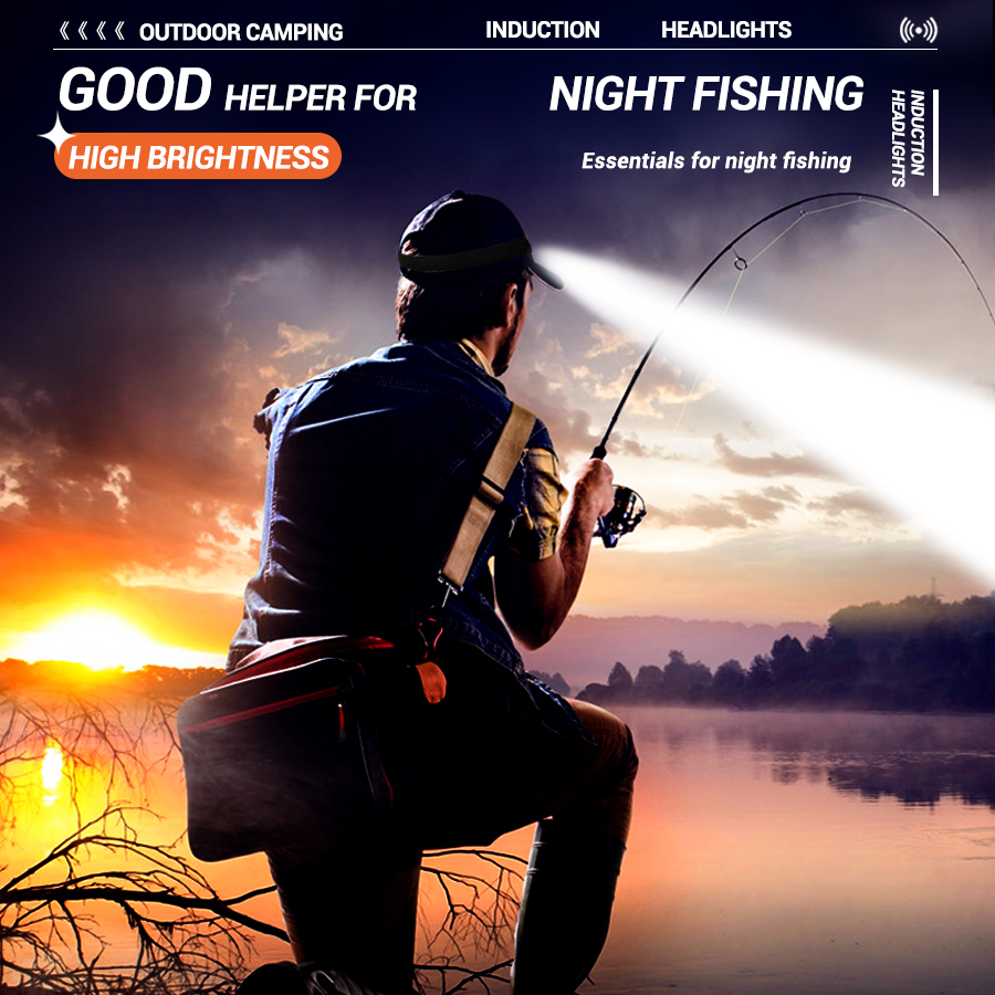 Mô tả sản phẩm Mới XPE+COB cảm ứng ánh sáng mạnh đầu đèn USB sạc ngoài trời ánh sáng ban đêm đi xe ánh sáng đầu