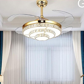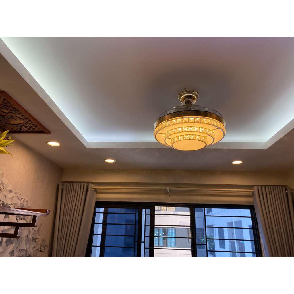 Quạt trần đèn chùm giấu cánh hiện đại, sang trọng, động cơ DC tiết kiệm điện, bền bỉ