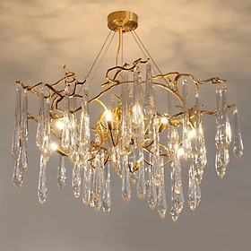 Chất liệu: đế là kim khí mạ vang,thân đèn là kim loại tổng hợp nhôm mạ vang phối hợp với những thanh phale hình giọt nước chuẩn K9