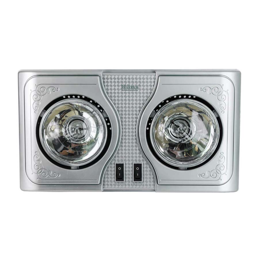 Đèn sưởi nhà tắm 2 bóng cao cấp Với việc sử dụng công nghệ mới, bóng đèn được tráng một lớp hợp kim màu vàng sẽ làm giảm độ chói của ánh sáng mà vẫn không làm giảm đi nhiệt độ do bóng tỏa ra. Đèn sưởi nhà tắm 2 bóng có thể sử dụng ở phòng tắm, phòng ngủ, phòng khách. THÔNG TIN SẢN PHẨM: Điện áp: 220V; 50Hz Model: K2B-G Công suất: 550W đèn 2 bóng Bảng điều khiển: 2 công tắc điều khiển 2 bóng Bóng đèn: 2 bóng tráng kim cương nhân tạo có tác dụng tăng độ ấm và giảm chói mắt khi sử dụng Tuổi thọ Bóng đèn: > 10.000 h (tương đương 6 năm) Dây điện: dài 2m, đầu cắm tròn, 2 chân theo tiêu chuẩn châu Âu Phụ kiện đi kèm: móc treo 2 vít nở. Diện tích phòng: từ 2 - 4 m2 TÍNH NĂNG NỔI BẬT ❶ Thiết kế thời trang, bề mặt bóng tráng kim cương nhân tạo, logo nổi và sắc nét, bóng sưởi bớt chói mắt và có độ ấm cao hơn những bóng thông thường. ❷ Kích thước nhỏ gọn tiết kiệm diện tích cho phòng tắm nhà bạn ❸ Sử dụng bóng hồng ngoại, sưởi ấm nhanh , không đốt cháy oxy ❹ Thiết kế sang trọng phù hợp với mọi phòng tắm