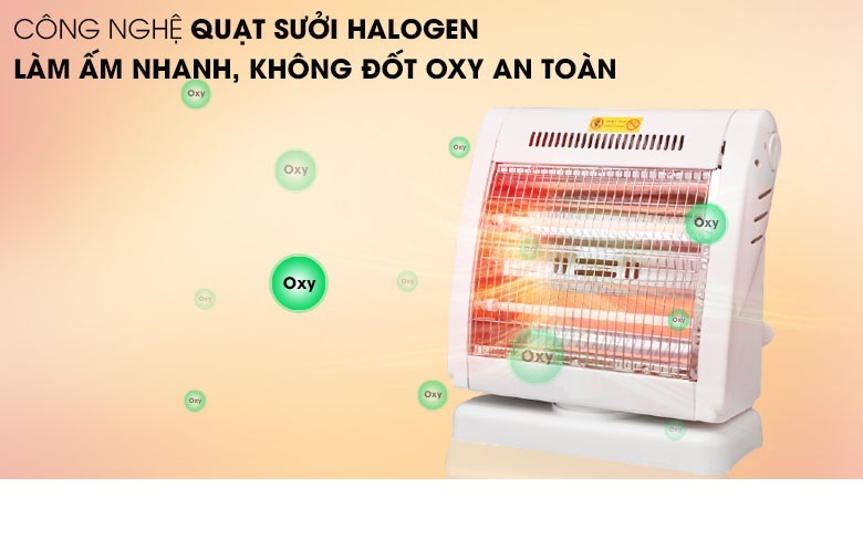 - Tự động ngắt điện khi quạt bị nghiêng hay đổ Đèn Sưởi Điện 2 Bóng Halogen 800W Xoay 90 Độ - Hàng Chính Hãng là một trong những thiết bị sưởi ấm không thể thiếu tại gia đình trong mùa đông. Sản phẩm sử dụng đèn Halogen, tỏa nhiệt đều, làm ấm nhanh, không gây khó thở và khô da, đảm bảo an toàn cho người sử dụng. Kiểu dáng sang trọng, hiện đại Đèn Sưởi Điện 2 Bóng Halogen 800W Xoay 90 Độ - Hàng Chính Hãng có thiết kế sang trọng hơn, kiểu dáng hiện đại và bắt mắt, nhỏ gọn tiết kiệm diện tích và phù hợp mọi không gian như phòng khách, phòng ngủ, Điều khiển dễ dàng bằng nút xoay Đèn Sưởi Điện 2 Bóng Halogen 800W Xoay 90 Độ - Hàng Chính Hãng có 3 mức công suất 400W, 800W điều chỉnh bằng núm vặn linh hoạt theo 2 chiều giúp bạn dễ dàng lựa chọn được mức nhiệt phù hợp với môi trường và nhu cầu sử dụng. Chắc chắn, bền đẹp, an toàn Đèn Sưởi Điện 2 Bóng Halogen 800W Xoay 90 Độ - Hàng Chính Hãng có chân đế vững chãi, lưới bảo vệ, tránh gây bỏng cho người dùng. Đặc biệt, lồng và vỏ nhựa phía sau chống cháy tuyệt đối, lưới tản nhiệt giúp sản phẩm không bị hư hỏng do quá nóng. TỎA NHIỆT ĐỀU, KHÔNG GÂY KHÔ DA Làm ấm cực nhanh, không gây khô da Đèn Sưởi Điện 2 Bóng Halogen 800W Xoay 90 Độ - Hàng Chính Hãng sử dụng đèn halogen, làm ấm cực nhanh, độ bền vượt trội, chống chói mắt hiệu quả và không đốt cháy oxy nên không gây khó thở hay khô da khi dùng. Quay đảo chiều, tỏa nhiệt đều khắp phòng Sản phẩm có khả năng quay đảo chiều liên tục, giúp tỏa nhiệt đều khắp phòng, rất thích hợp khi sử dụng tại không gian rộng như phòng khách hoặc phòng có nhiều người. An toàn với người sử dụng Đèn Sưởi Điện 2 Bóng Halogen 800W Xoay 90 Độ - Hàng Chính Hãng có chế độ tự động ngắt điện khi bị nghiêng đổ và hoạt động trở lại bình thường trở lại trạng thái an toàn. Thông số kỹ thuật