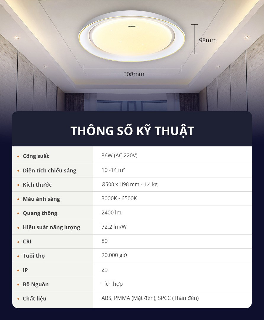 Mua tại TiktokĐèn trần ánh sao Starry Panasonic HHXZ301188 36W ƯU ĐIỂM NỔI BẬT