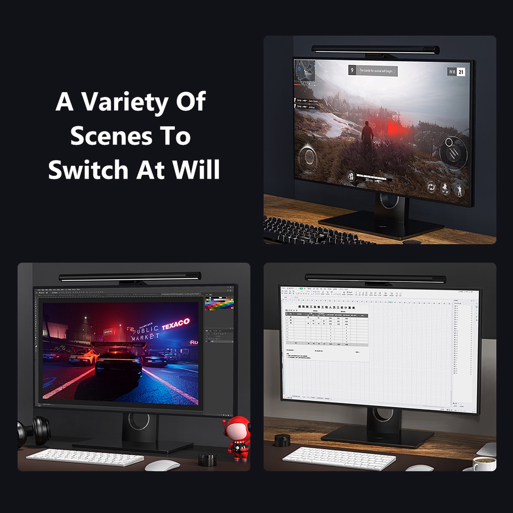 Tập trung vào Ánh sáng cho khu vực máy tính để bàn Làm sáng rõ các tập tin ở phía trước màn hình Thiết kế cấu trúc trục quay trọng lực độc đáo được áp
