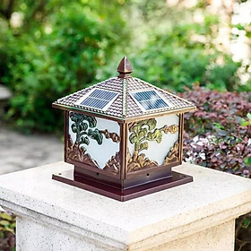 Kiểu dáng đèn được thiết kế theo phong cách Châu Âu, có màu vàng đồng . Màu vàng đồng đem lại vẻ đẹp cổ kính, Được làm bằng nhựa ABS bên ngoài phủ lớp sơn tĩnh điện chống ăn mòn, đem lại vẻ đẹp bền lâu. Được trang bị chống nước, chống bụi đạt tiêu chuẩn IP65 (khả năng ngăn chặn sự xâm nhập của nước vòi phun áp lực lớn ở tất cả các hướng và ngăn chặn hoàn toàn sự xâm nhập của bụi và các đối tượng lạ). Dó đó, bạn có thể yên tâm khi đặt sản phẩm ở ngoài trời. Sản phẩm sử dụng điện năng từ tấm pin hấp thụ năng lượng mặt trời. Vì vậy, việc lắp đặt trở nên dễ dàng hơn bao giờ hết. Không cần dây điện rắc rối, không nguồn điện phức tạp. Hơn nữa, chúng an toàn tuyệt đối với môi trường. CHI TIẾT SẢN PHẨM: MÀU SẮC ĐÈN: MÀU ĐỒNG. KÍCH THƯỚC :(RỘNGCAO): 2525 (cm)