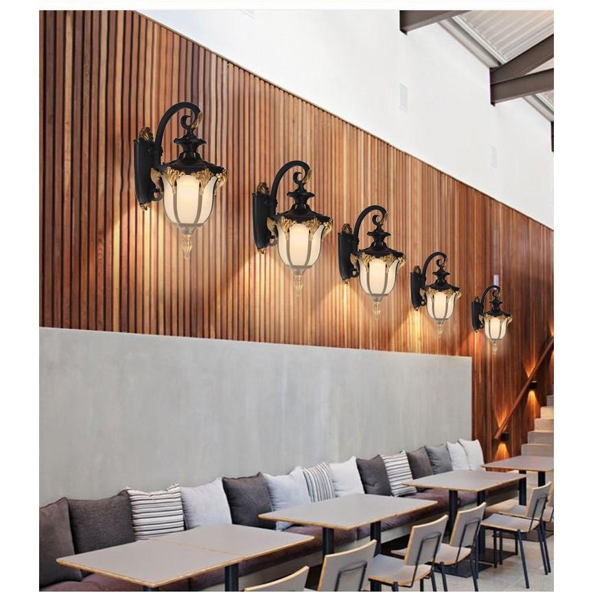 Đèn cột, đèn tường chiếu sáng biệt thự sân vườn Phong cách Châu Âu Chất Liệu: Hợp kim sơn tĩnh điện chống gỉ Kích thước: 43*29cm Sử dụng bóng LED đui E27 Vùng chiếu sáng