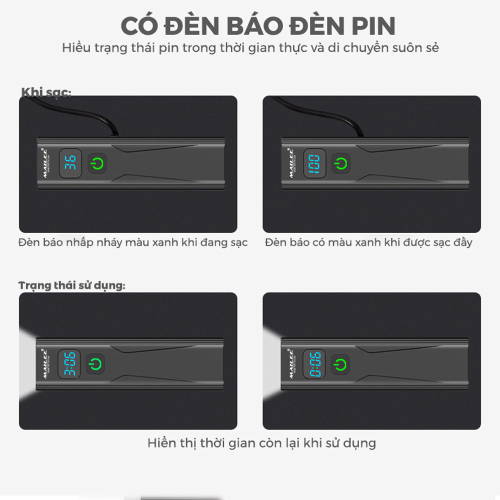 Đèn Xe Đạp BC-10 dung lượng 2600mAh 2 bóng, có hiển thị thời gian còn lại sử dụng, sạc Type-C, Có Hỗ trợ Sạc Khẩn Cấp - Mai Lee Mẫu sản phẩm: Đèn trước xe BC10 Loại nguồn sáng: T6 Loại giá đỡ: Giá đỡ nhanh có thể xoay 360 độ Bảo vệ sạc/xả: IC bảo vệ quá sạc và quá xả tích hợp, kéo dài tuổi thọ pin Chỉ báo pin: Pin đầy LED màu xanh, pin yếu LED nhấp nháy màu xanh Chỉ báo sạc: Khi sạc LED nhấp nháy màu xanh, khi sạc đầy là màu xanh Hiển thị điện năng: Hiển thị thời gian sử dụng theo thời gian thực Chế độ điều chỉnh độ sáng: Sáng mạnh, sáng vừa, sáng yếu, nhấp nháy, SOS (nhấn giữ hai giây để tắt) Đầu vào sạc: 5V/1A; Đầu ra điện áp: 5V/1A; Điện áp làm việc: 3.7V Màu sắc sản phẩm: Màu đen Màu ánh sáng: Ánh sáng trắng Nhiệt độ màu của bóng đèn: 7500K Chất liệu thân đèn: Hợp kim nhôm Thời gian sạc: Khoảng 4 giờ (2600mAh) Thời gian sử dụng: Sáng cao 4 giờ (2600mAh) Xử lý bề mặt: Anod hóa chống mài mòn Cách đặt: Hỗ trợ đứng thẳng, đảo ngược Mức độ chống nước: IPX5 (chống mưa, chống nước bắn) Dung lượng pin: 2600mAh Kích thước sản phẩm: Tổng chiều dài 113mm, chiều rộng 32mm, độ dày 25mm Trọng lượng tịnh sản phẩm: 148g