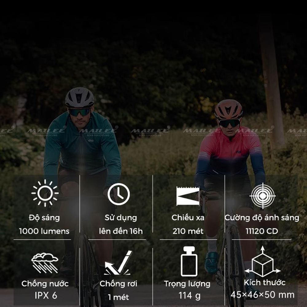 • Chống nước IPX6, chịu được thời tiết xấu, lý tưởng cho mọi điều kiện thời tiết, an toàn cho mọi hành trình ngày và đêm.