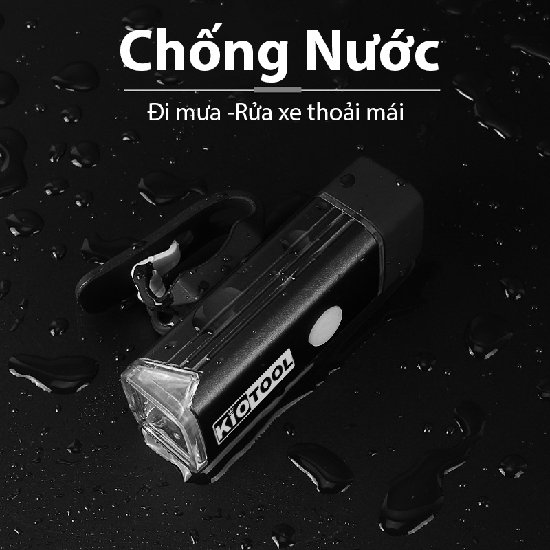 Đèn xe đạp Kiotool nhiều chế độ sáng chống nước   Bất kì một môn thể thao nào cũng cần có những loại phụ kiện kèm theo để hỗ trợ người chơi. Do đó, nếu yêu thích bộ môn đạp xe bạn cũng cần phải trang bị thêm một số phụ kiện hỗ trợ thiết yếu. Những phụ kiện xe đạp này sẽ giúp bạn tăng độ tiện lợi đồng thời bảo vệ bạn tốt hơn trong quá trình sử dụng. Phụ kiện xe đạp là những bộ phận bổ trợ cho xe có thể tháo rời hoặc thay thế, mỗi phụ kiện có những chức năng riêng. Bên cạnh những loại phụ kiện bắt buộc, tham gia vào quá trình vận hành của xe, những phụ kiện xe khác như quần áo đạp xe, mũ bảo hiểm, chắn bùn, giày đi xe, Đèn báo hiệu gắn đuôi xe đạp 5 bóng cũng là những phụ kiện quan trọng đóng vai trò bảo vệ bạn khi đạp xe. Tuy không ít người đạp xe cho rằng những phụ kiện này không cần thiết nhưng khi đạp xe trong điều kiện thời tiết khắc nghiệt hoặc tại những địa hình nguy hiểm bạn có thể nhận ra vai trò thiết yếu của những loại phụ kiện này. Đặc biệt là đối với những dân chơi xe đạp, bên cạnh chọn mua một chiếc xe đạp phù hợp thì không nên bỏ qua những loại phụ kiện xe đạp trong mỗi chuyến đi   Thông tin sản phẩm và hướng dẫn sử dụng Đèn xe đạp siêu sáng pin sạc usb chống nước:   -Thiết kế nhựa cao cấp kết hợp cao su theo tiêu chuẩn chống nước ip44 đủ để hoạt động trong bất kỳ thời tiết như nắng nóng hay mưa rào -Sản phẩm có nút bấm 1 nút trên đèn để điều chỉnh đèn Sản phẩm sử dụng pin liền sạc lại qua cổng usb dung lượng pin lên đến 1200mah theo công bố của nhà sản xuất pin có thể sạc trên 500 lần và khi sạc đầy (rơi vào khoảng 2 giờ) tùy chế độ thời gian sử dụng sẽ khác nhau chế độ cường độ sáng (lumen) thời gian sáng mạnh 250LM 2.5H sáng mờ 125LM 5.0H nháy sáng 250LM 3.5H -Về ánh sáng: sử dụng bóng led T6 nhập khẩu mỹ công suất 3w hiệu suất cao với 3 chế độ sáng giúp người dùng di chuyển dễ dàng trong đêm tối