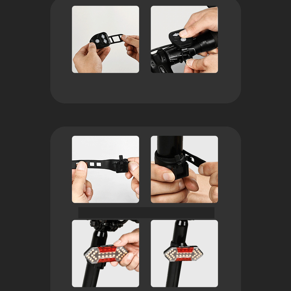 - Đèn xi nhan xe đạp - Đèn LED tín hiệu điều khiển từ xa gắn đuôi xe đạp - lắp đặt dễ dàng - - Điều khiển từ xa không dây, dễ sử dụng,
