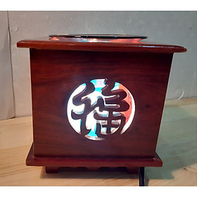 Đèn xông tinh dầu gỗ Hình vuông Chữ Phúc -gỗ hương- Tặng kèm 1 bóng đèn
