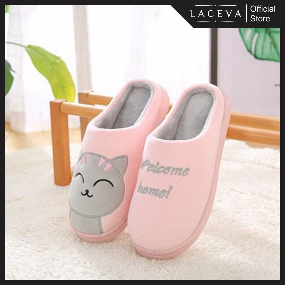 Dép Bông Đi Trong Nhà Mùa Thu Đông Đế Dày Chống Trơn Trượt Hình Mèo Dễ Thương