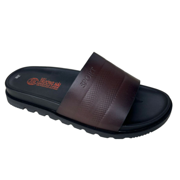 Dép Nam Quai Ngang Da Bò Bản Lớn Màu Nâu Trường Hải DN046