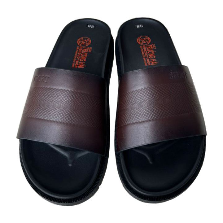 ✨Dép da nam quai ngang thời trang da bò thật màu nâu chính hãng Trường Hải QN157