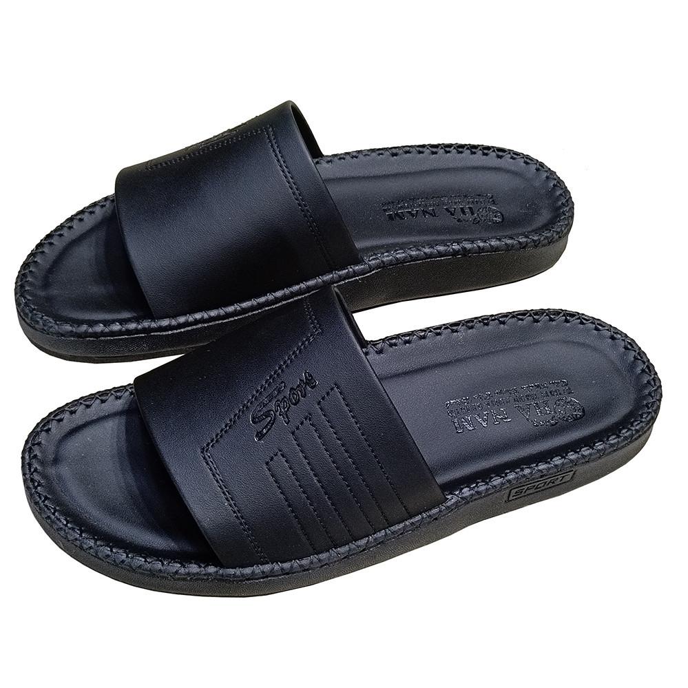 Dép Da Nam  - Lịch Lãm & Thoải Mái Mỗi Ngày - Chất liệu cao cấp: Sử dụng da tổng hợp chất lượng, mềm mại, bền bỉ theo thời gian, mang lại cảm giác êm ái và thoáng khí cho bàn chân. - Thiết kế sang trọng: Tông màu đen lịch lãm, kết hợp với đường chỉ may tinh tế và logo kim loại nổi bật – tôn lên vẻ nam tính, trưởng thành. - Đế chống trượt: Đế EVA siêu nhẹ, độ đàn hồi tốt, kết hợp vân đế tăng độ ma sát – an toàn khi di chuyển trên nhiều bề mặt. - Form ôm chân: Thiết kế bản quai ngang rộng, ôm gọn bàn chân nhưng không gây bí bách, dễ xỏ vào – thích hợp cho người trung niên và người lớn tuổi. - Ứng dụng đa năng: Phù hợp sử dụng trong nhà, đi dạo phố, đến văn phòng hoặc các dịp gặp gỡ thân mật. Lựa chọn tuyệt vời cho quý ông yêu thích sự thoải mái, đơn giản nhưng vẫn giữ được nét tinh tế trong từng bước chân.