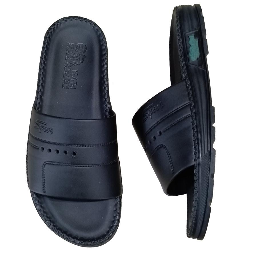 - Màu : đen - Chất liệu bên ngoài: quai dép da bò cao cấp tuyệt đối không bong tróc hay nổ da càng đi lớp da càng mềm mại bóng đẹp - Xuất xứ