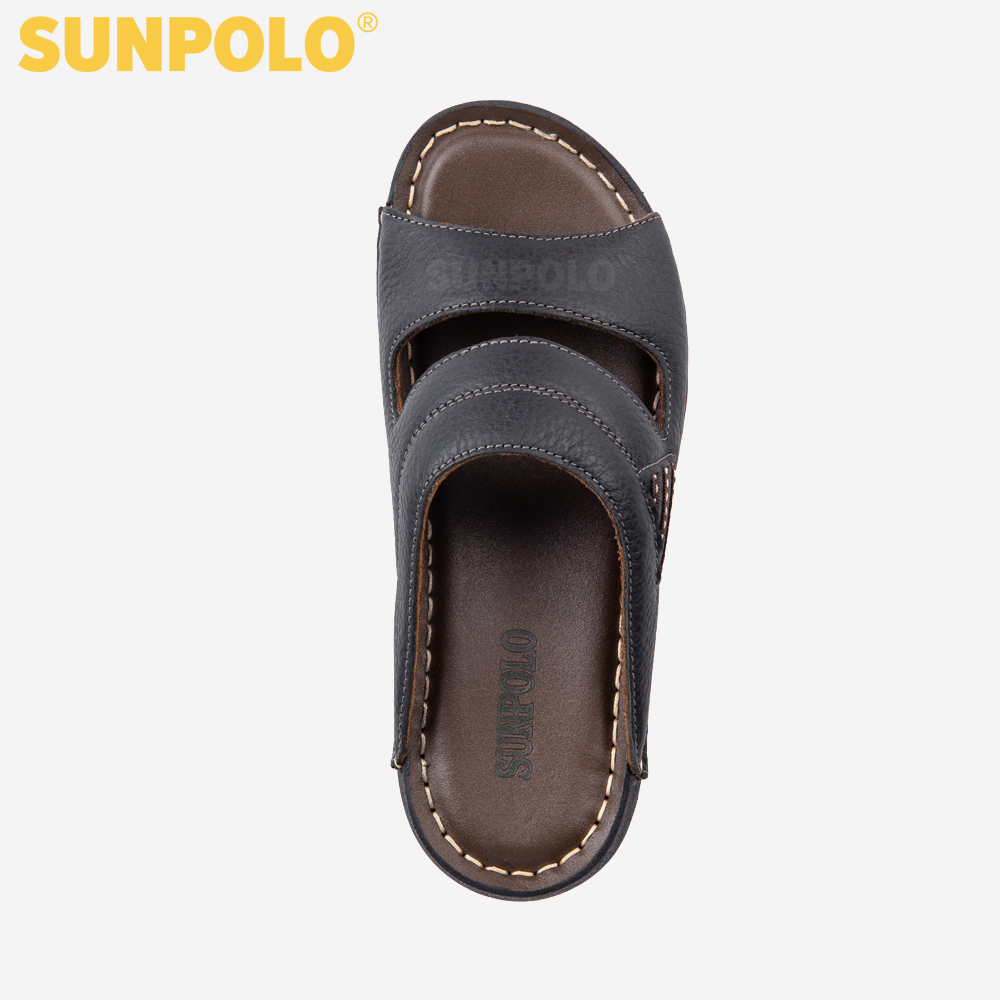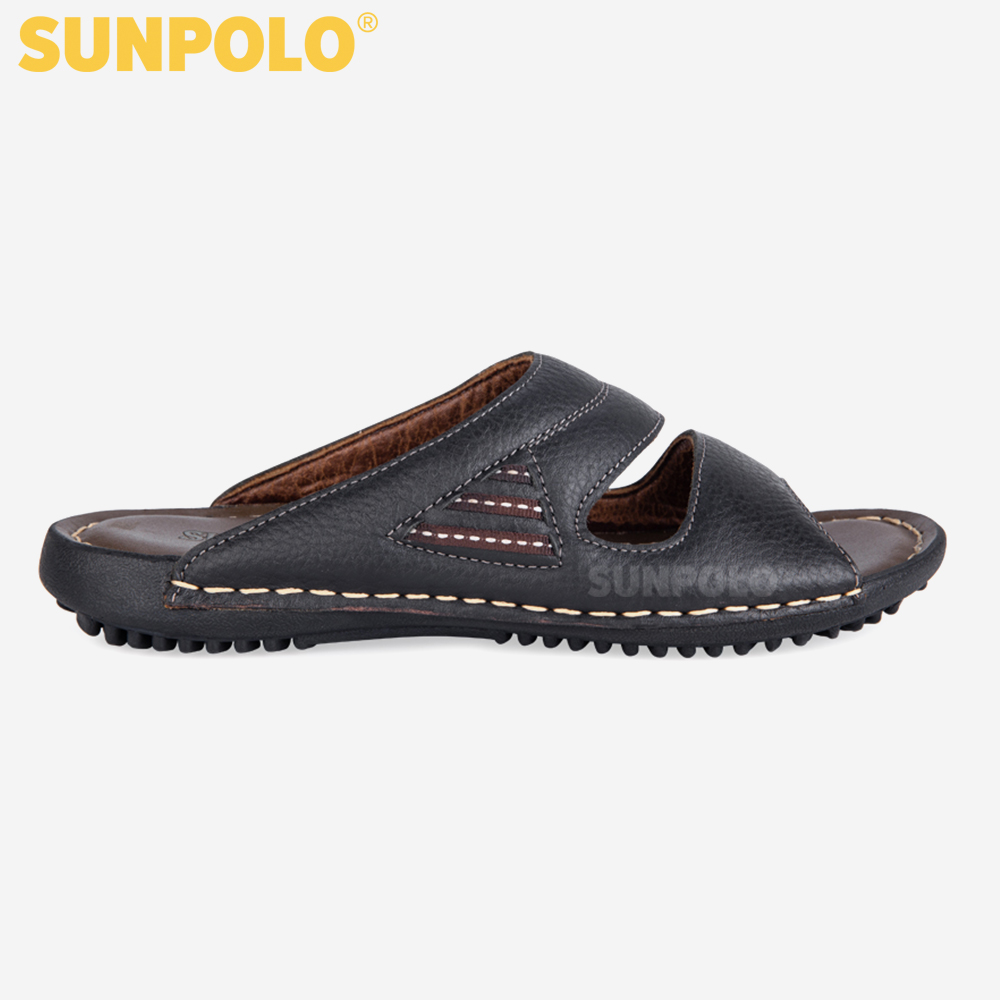 ✨Dép Nam Quai Ngang Da Bò Sunpolo SUD24D - Đen