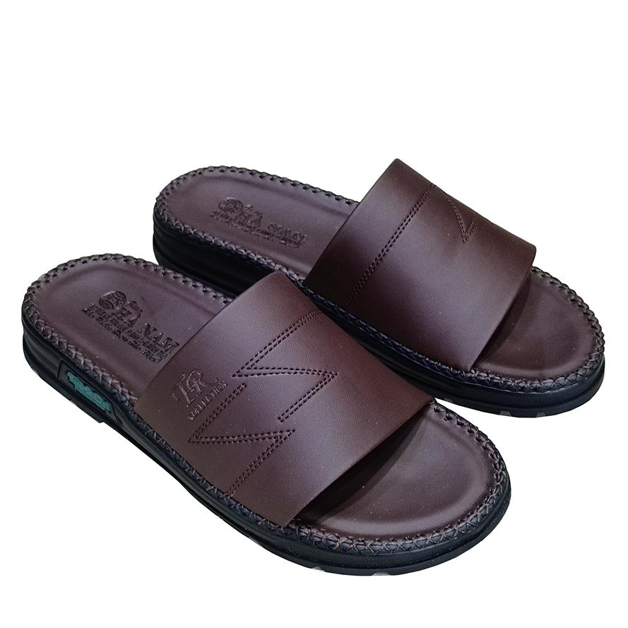 Dép nam Quai ngang một bản da bò thật đế cao 3.5cm chính hãng Trường Hải màu Nâu DNĐ156