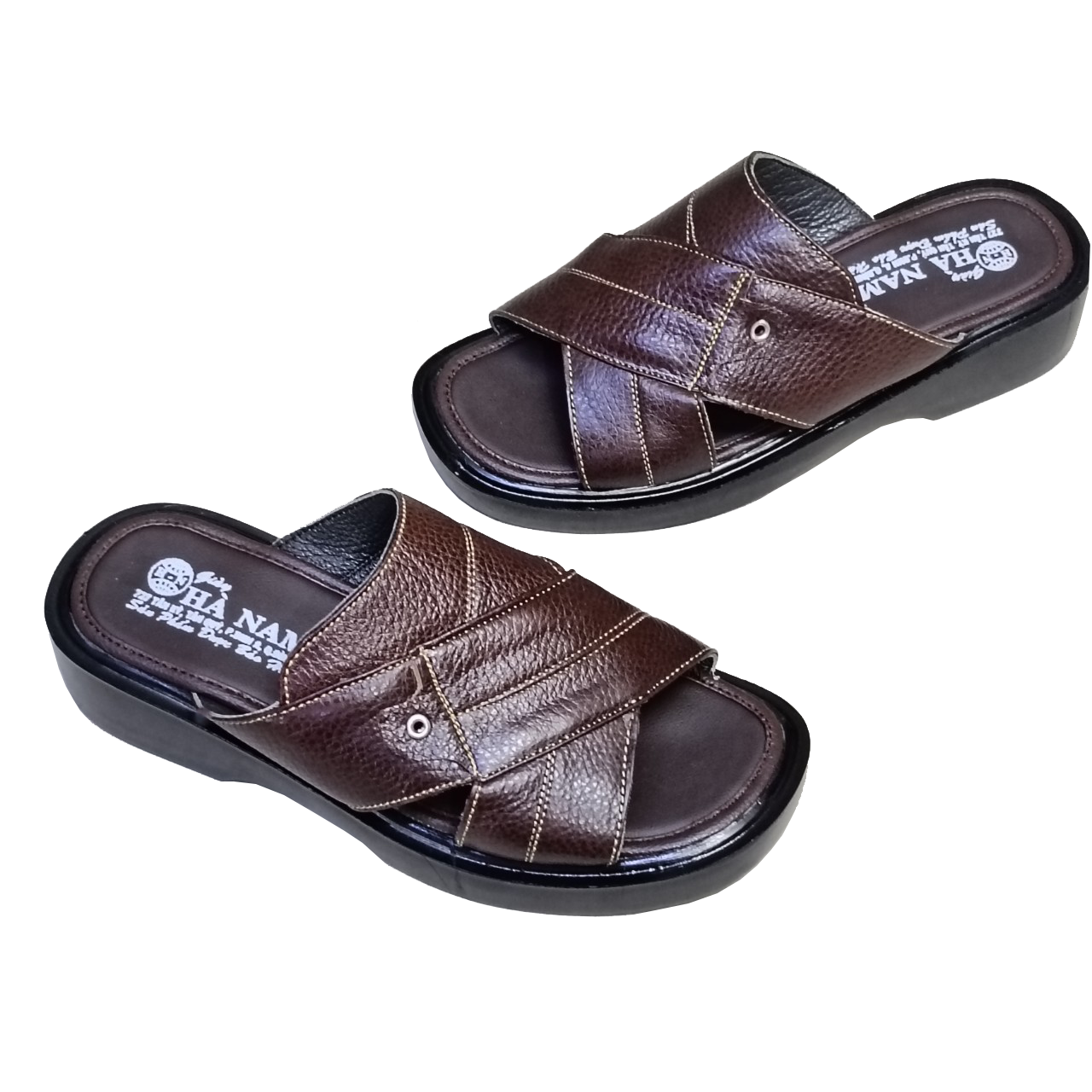 Dép Nam Quai Ngang Da Bò Thật HÀ NAM Đế Cao Dành Cho Người Thấp DN2058