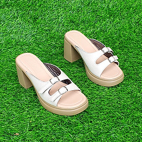 ✨Dép nữ cao gót 8cm Trường Hải da bò mềm mại màu kem CG145