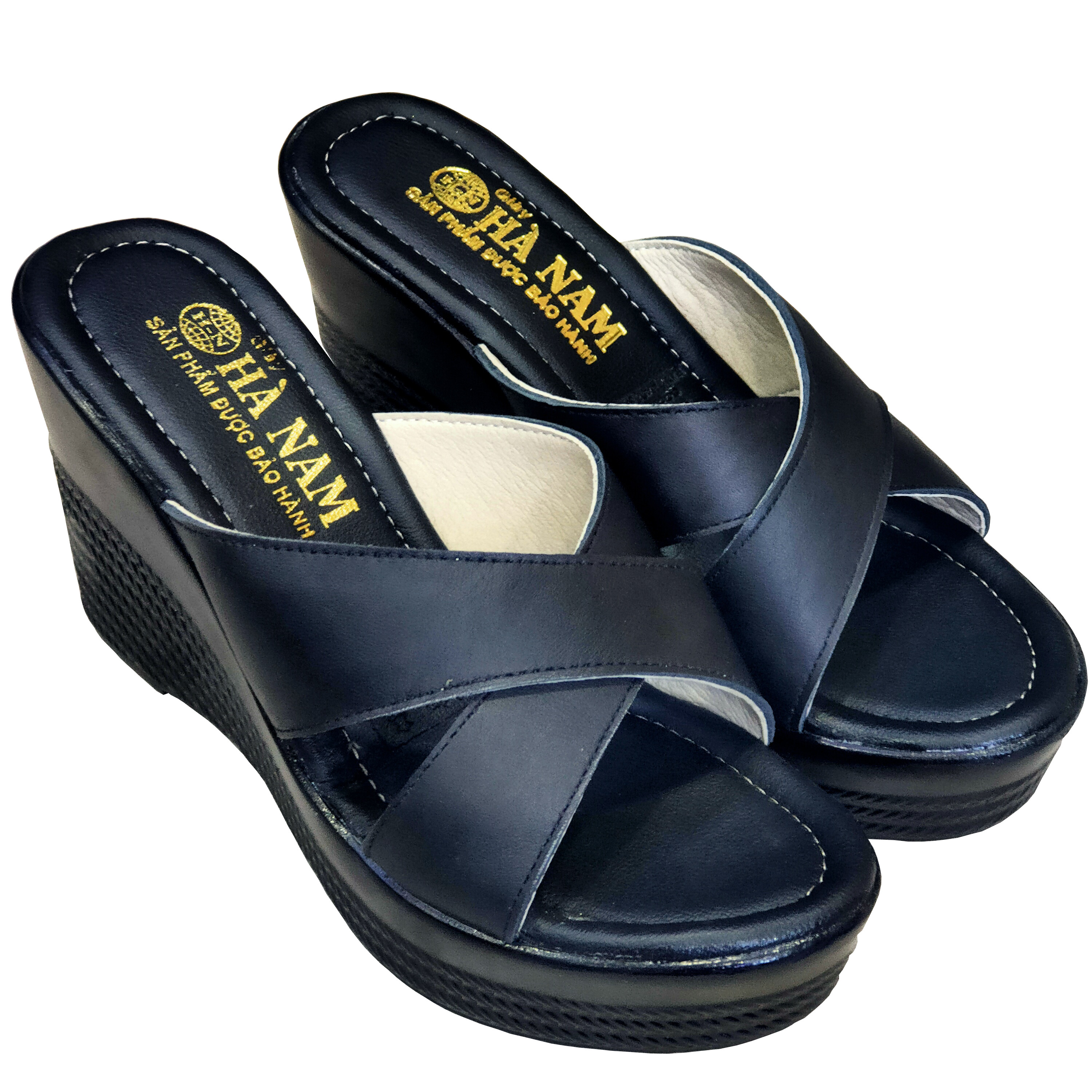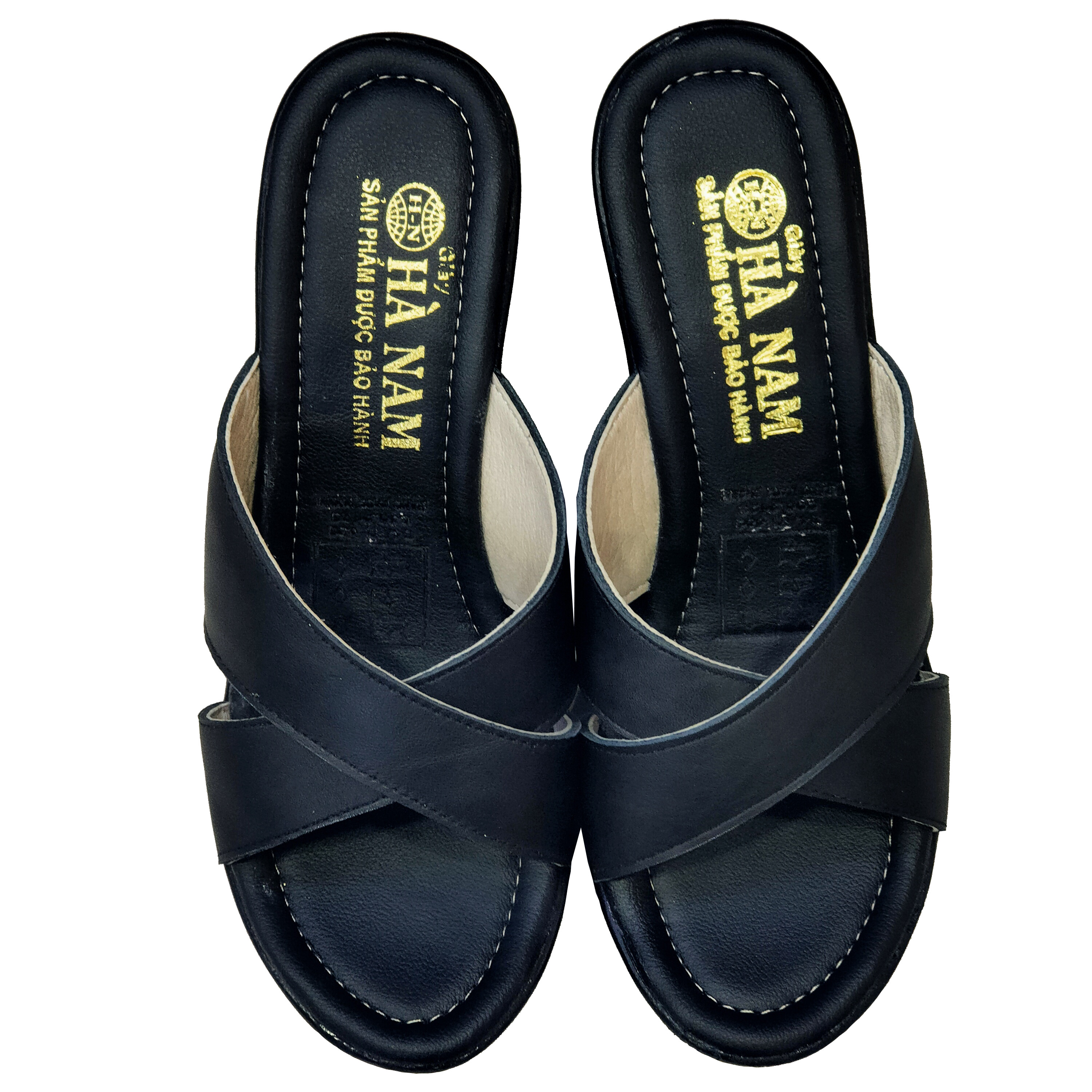 ✨Dép nữ đế xuồng quai ngang HÀ NAM da bò cao cấp 9cm DNU2023