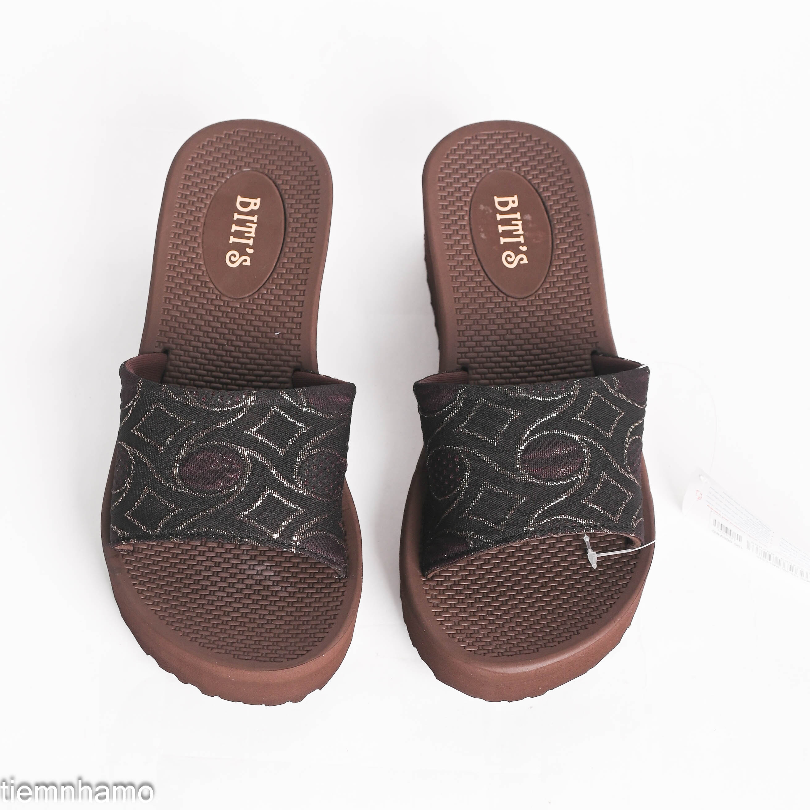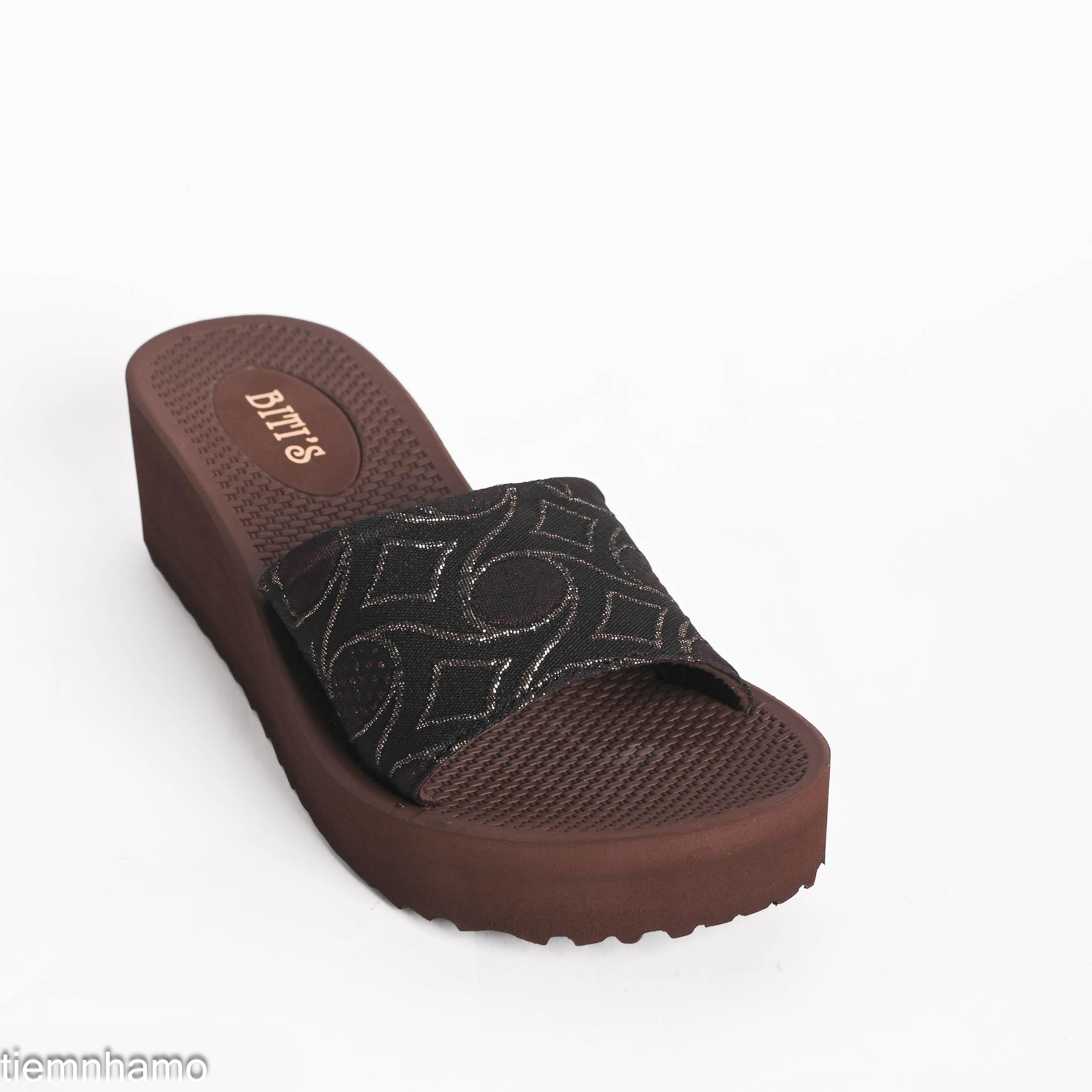 Mua tại Tiktok(V) Mô tả sản phẩm: Dép quai ngang Biti's nữ: Chất liệu:PVC cao cấp. Màu sắc:Dark Brown-Black Size:35-36-37-38-39. Dép được thiết kế với đế có xẻ rãnh chống trượt. Phần quai được làm băng vải giúp thấm hút mồ hôi tốt, dép được thiết kế với chất liệu êm nhẹ cho đôi chân bạn. Chiều cao đế 5cm giúp tôn giáng. Quai ngang của dép giúp bạn dễ dàng thao tác xỏ hoặc tháo và dép cũng rất dễ lau chùi. Gram màu của dép giúp bạn dễ phối đồ.
