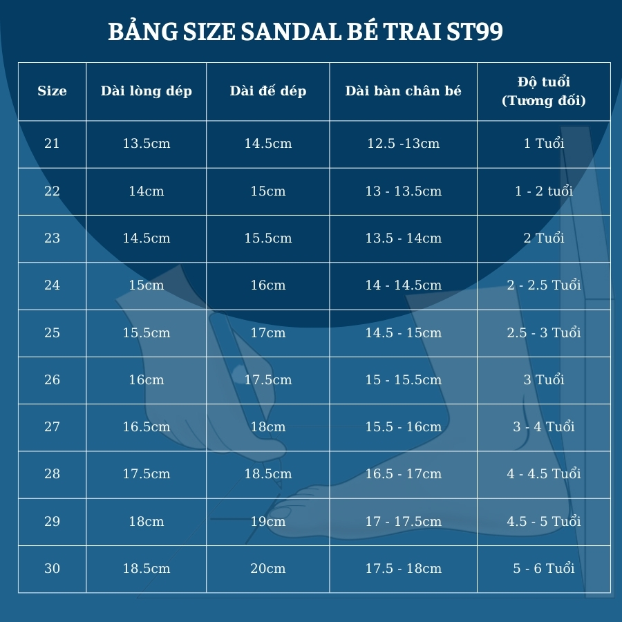 Sandal bé trai ST99 thiết kế dáng thể thao, khỏe khoắn năng động, phù hợp cho các bé độ tuổi mầm non mẫu giáo mang đi học, đi chơi, đi tiệc, du lịch, hay dã ngoạ