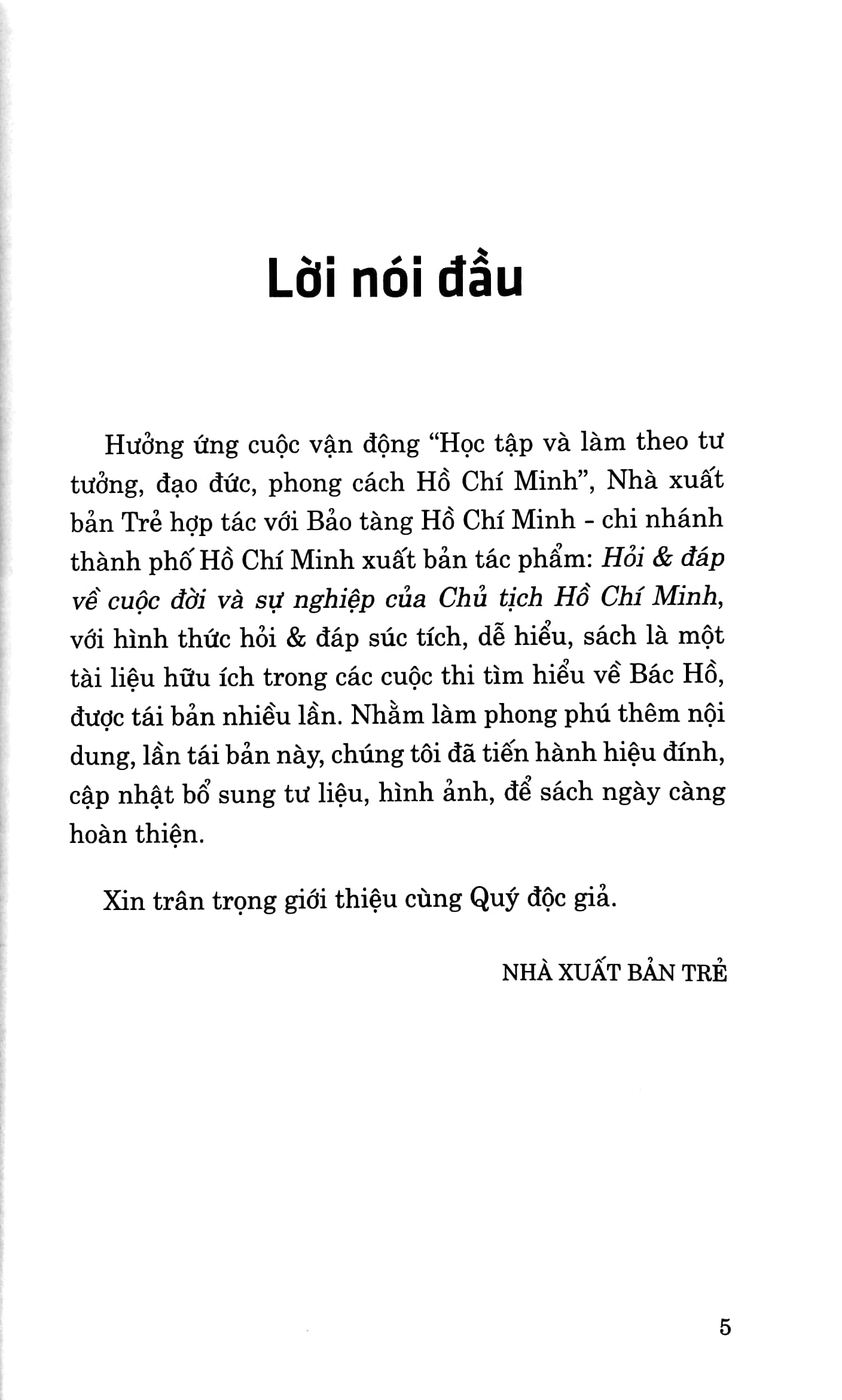 Mua tại TiktokDi Sản Hồ Chí Minh - Hỏi & Đáp Về Cuộc Đời & Sự Nghiệp Của Chủ Tịch Hồ Chí Minh (Tái Bản 2020) Sách tập hợp những câu hỏi đáp ngắn gọn về cuộc đời và sự nghiệp của Chủ tịch Hồ Chí Minh. Giúp bạn đọc có tư liệu tham khảo khi tìm hiểu về cuộc đời và sự nghiệp của Người.