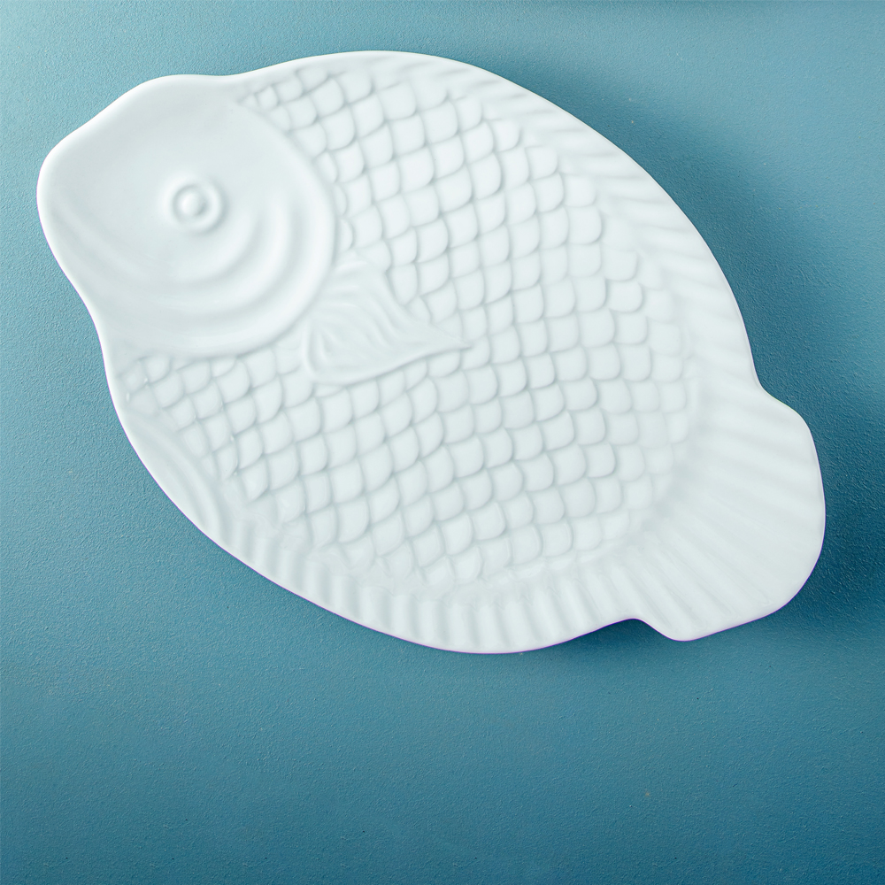 Đĩa đựng thức ăn hình cá diêu hồng bằng sứ trắng cao cấp Long Phương