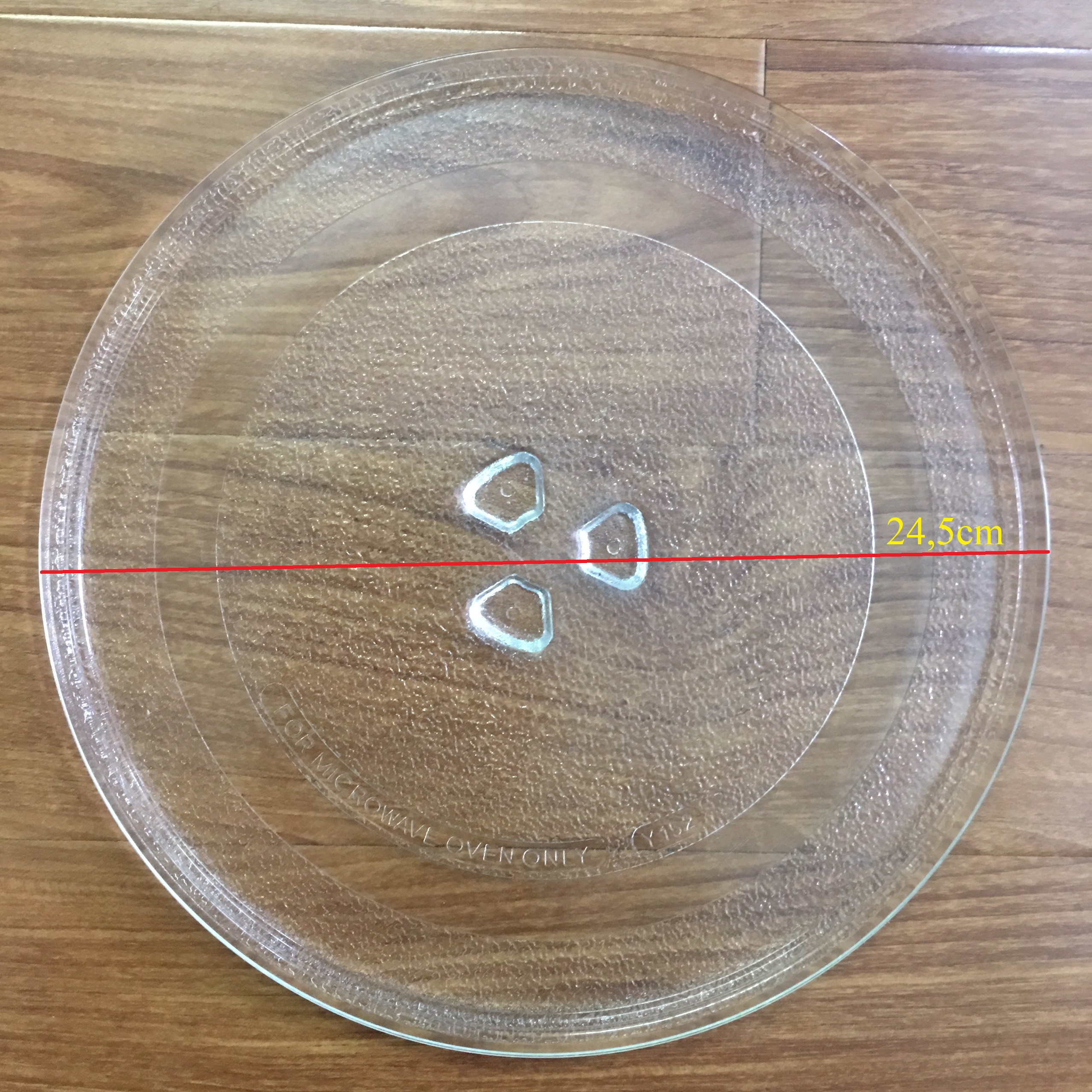2 lựa chọn: Đĩa lò vi sóng 24.5cm có Vấu xoay, ở tâm mặt dưới Đĩa lò vi sóng 24.5cm không có Vấu, mặt dưới phẳng, Không vấu Chất liệu: #bàn_xoay #con_lăn #đĩa_lò_vi_sóng / #khay_lò_vi_sóng