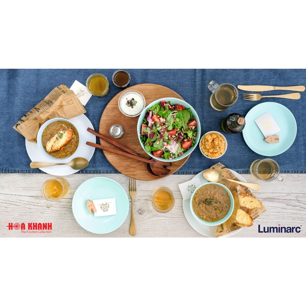 Một điểm nhấn đặc biệt trong bộ sưu tập chén dĩa bàn ăn của Luminarc, chính là dòng sản phẩm chén dĩa thủy tinh có màu - Diwali Light Turquoise. Vẫn xuất phát từ thủy tinh gốm Opal, màu sắc đã được các nhà sản xuất pha trộn một cách khéo léo từ những giọt màu organic, thân thiện với sức khỏe người tiêu dùng. Mang lại tính thẩm mĩ cao khi phối hợp tone màu xanh ngọc sáng hiện đại, thanh lịch và tinh tế - phong cách nổi bật đến từ Pháp. Ngoài ra, cảm giác dễ chịu từ màu xanh ngọc sáng mang lại cho không gian bàn ăn sự thoải mái nhưng không kém phần nổi bật.
