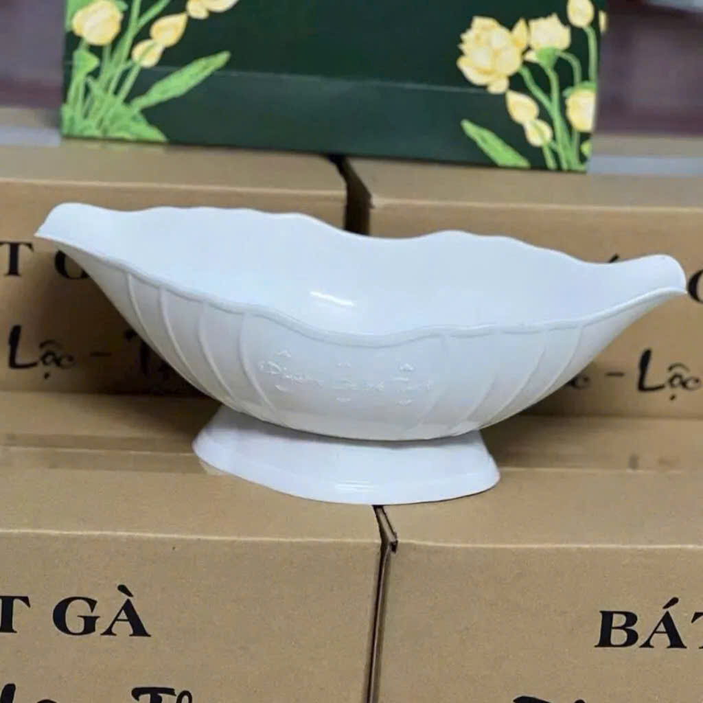 _Đĩa thuyền đựng gà , đựng hoa quả thắp hương thiết kế sang trọng , tinh sảo _Xuất xứ : Việt Nam - Chất liệu: nhựa - Màu sắc: trắng ngà sáng bóng - Kích