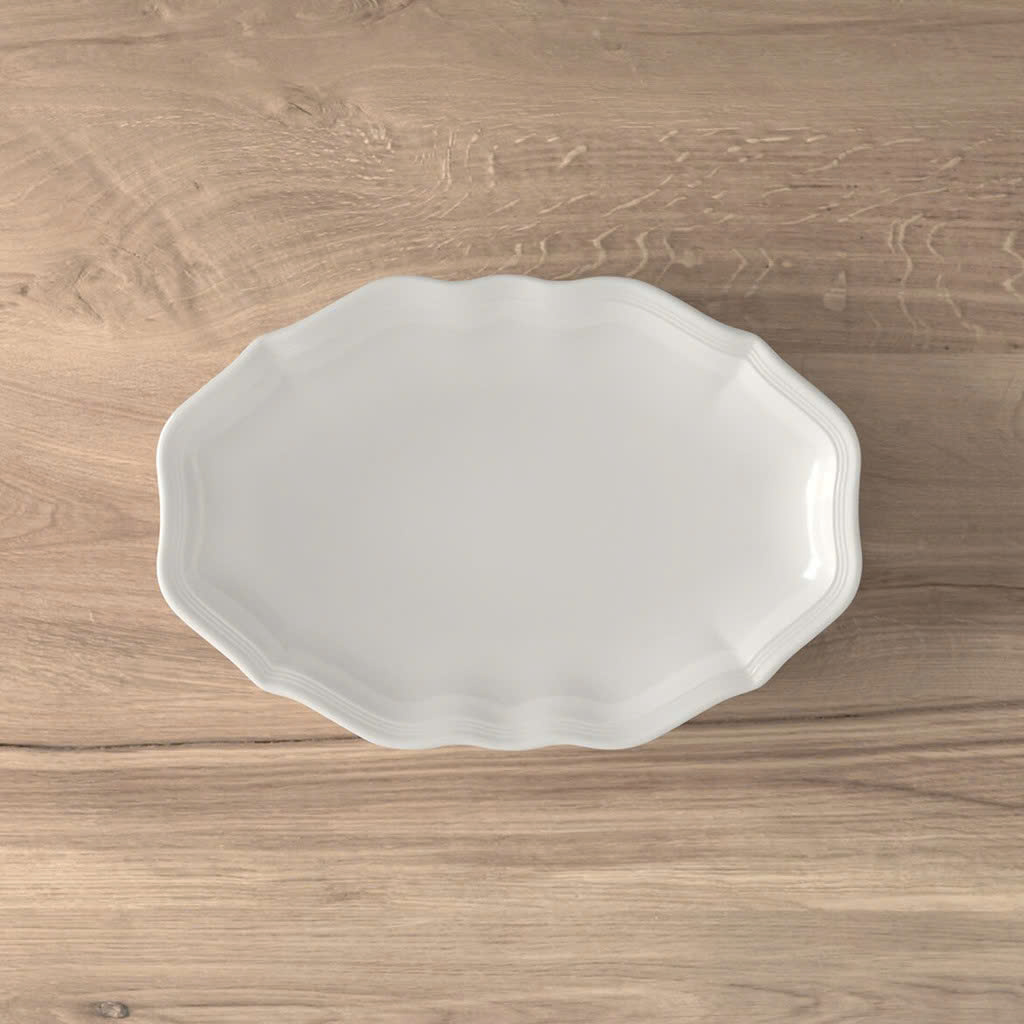 Đĩa Villeroy & Boch được thiết kế với các đường nét đậm và phù điêu biểu cảm mang đến cho Manoir cổ điển một không khí hùng vĩ. Hình dạng của Manoir rất thanh lịch và vương giả, và chiếc đĩa có viền hơi cong mang đến trải nghiệm độc đáo và hấp dẫn.