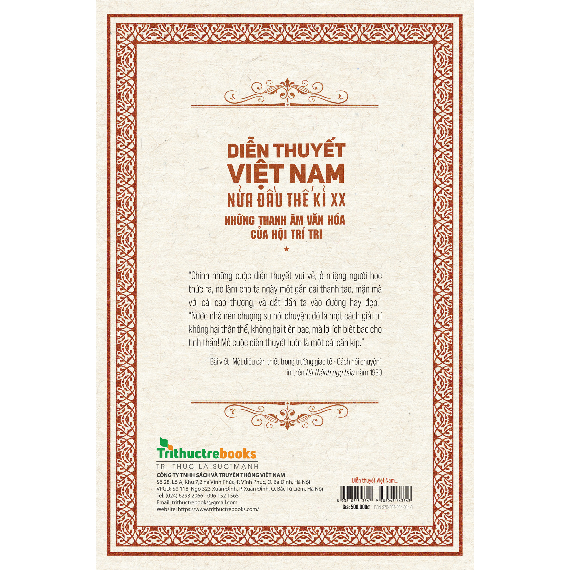 Tên sách: Diễn thuyết Việt Nam nửa đầu thế kỉ XX - Những thanh âm văn hóa của Hội Trí Tri