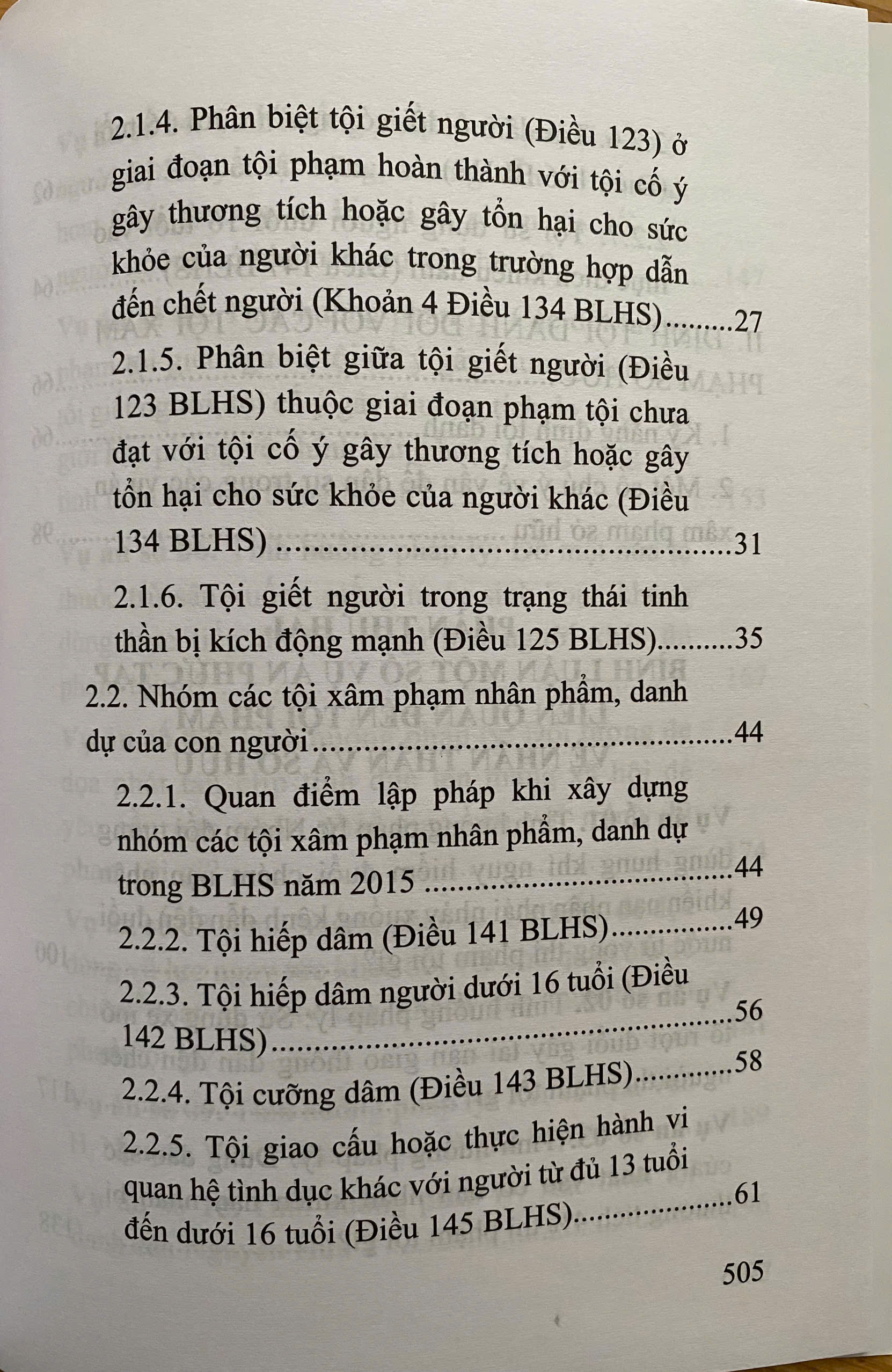 Để góp phần tích cực vào công tác bảo đảm an ninh trật tự, phòng ngừa và đấu tranh, chống tội phạm, bảo đảm quyền con người, quyền và lợi ích hợp pháp của công dân, cũng như nâng cao năng lực, uy tín của các cơ quan bảo vệ, thực thi pháp luật và là chỗ dựa pháp lý vững chắc của mọi cá nhân, cơ quan, tổ chức, nhóm tác giả đều là những Giảng viên đang thực hiện công tác nghiên cứu, giảng dạy tại Khoa Luật - Học viện Cảnh sát nhân dân đã dày công sưu tầm, nghiên cứu, phân tích, đánh giá một số vụ án phức tạp, vướng mắc trong việc định tội danh và xác định trách nhiệm hình sự trong giai đoạn từ năm 2018 đến nay (kể từ khi Bộ luật Hình sự năm 2015 chính thức có hiệu lực từ ngày 01/01/2018), trong đó tập trung vào nhóm các tội x. âm phạm tính mạng, sức khỏe, nhân phẩm, danh dự của con người và các tội x. âm phạm sở hữu.