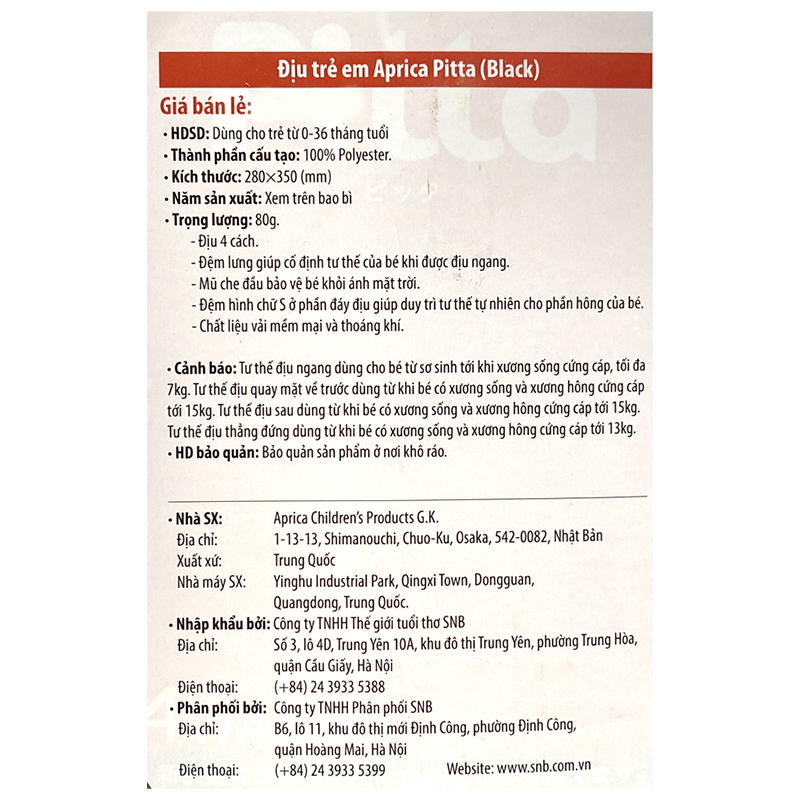 Địu trẻ em Aprica Pitta màu Black - Hàng chính hãngĐịu trẻ em Aprica Pitta màu Black - Hàng chính hãngĐịu trẻ em Aprica Pitta màu Black - Hàng chính hãngĐịu trẻ em Aprica Pitta màu Black - Hàng chính hãng