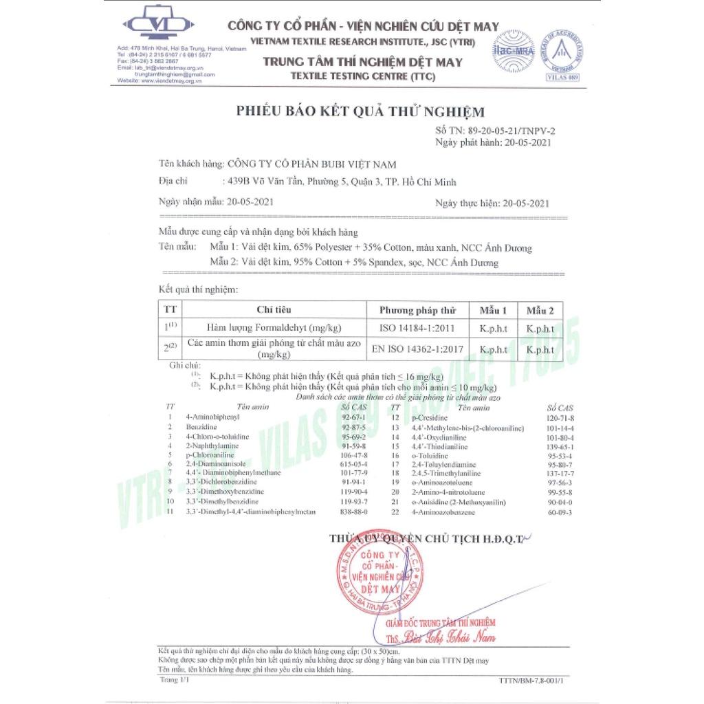 Các sản phẩm của ĐỊU VẢI BUBI đều đạt chuẩn hợp quy của viện nghiên cứu dệt may Ngày 24/5/2021, Công ty Cổ Phần BUBI Việt Nam được Viện nghiên cứu dêt may cấp DẤU CHỨNG NHẬN HỢP QUY CR cho thương hiệu Địu vải BUBI. Các sản phẩm của Địu vải BUBI được công nhận hàm lượng Formaldehyt và các Amin thơm tồn dư chuyển hóa từ thuốc nhuộm Azo trong các sản phẩm dệt may lưu hành trên thị trường Việt Nam đáp ứng tiêu chuẩn (QCVN 01.2017/BCT).