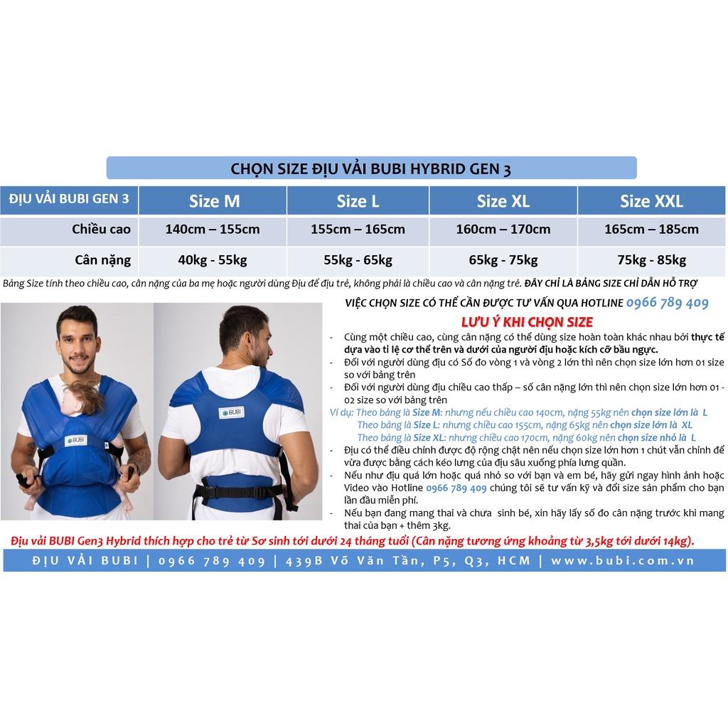 ƯU ĐIỂM CỦA BUBI Hybrid Gen 3:+ Nhiều size VỪA VẶN với nhiều dáng người khác nhau và đặc biệt phù hợp với chiều cao và hình dáng người Châu Á+ Địu được trẻ nhỏ từ sơ sinh tới 2 tuổi (từ 3,5kg - 13kg...
