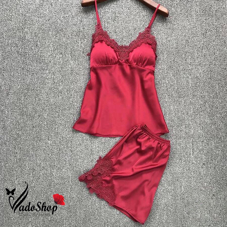 Bộ đồ ngủ gồm áo 2 dây và quần đùi, kiểu dáng thanh lịch mà gợi cảm tôn lên vóc dáng và mang đến vẻ đẹp cùng sự tự tin cho phái đẹp