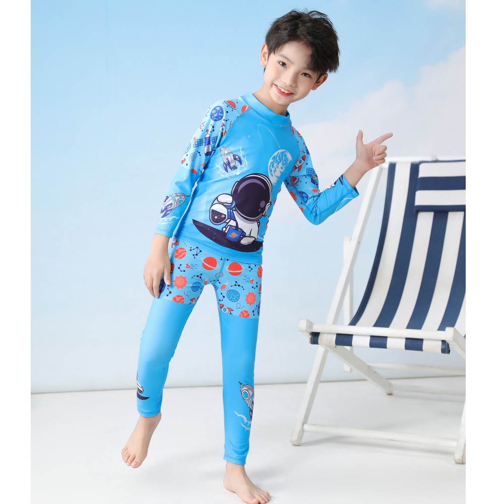 Đồ bơi bé trai họa tiết khoa học vũ trụ tay dài quần dài chống nắng cho bé Đồ bơi bé trai rời quần dài áo dài tay chống nắng, chất vải mềm mại, họa