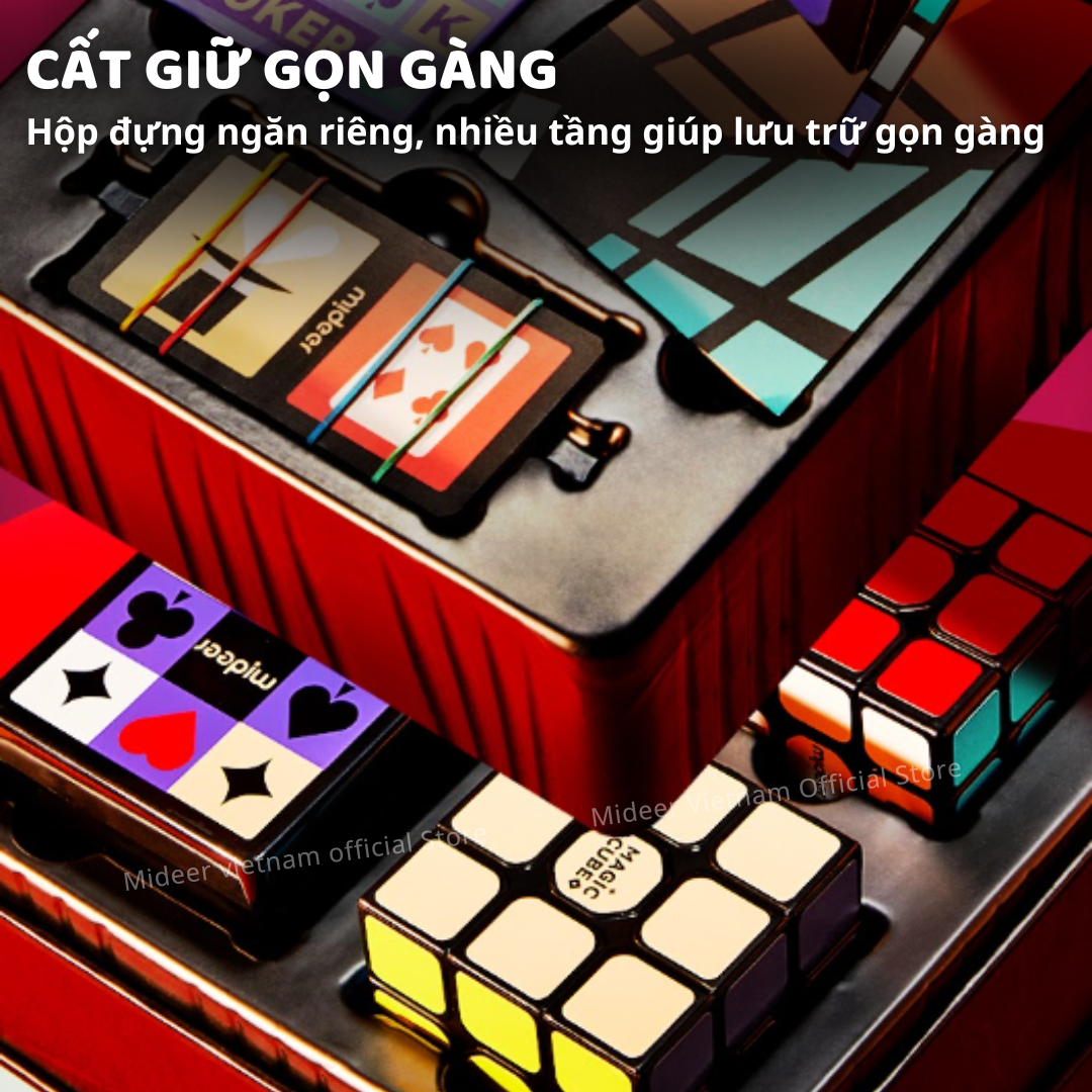 - VỪA LÀ MÓN ĐỒ MA THUẬT, VỪA LÀ ĐỒ CHƠI GIÁO DỤC: Sau khi biểu diễn phép thuật, có thể sử dụng khối rubik và bộ bài để tổ chức những trò chơi giáo dục cổ điển, mang đến niềm vui gấp đôi cho trẻ nhỏ!