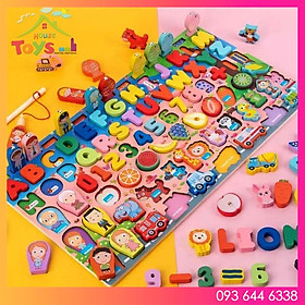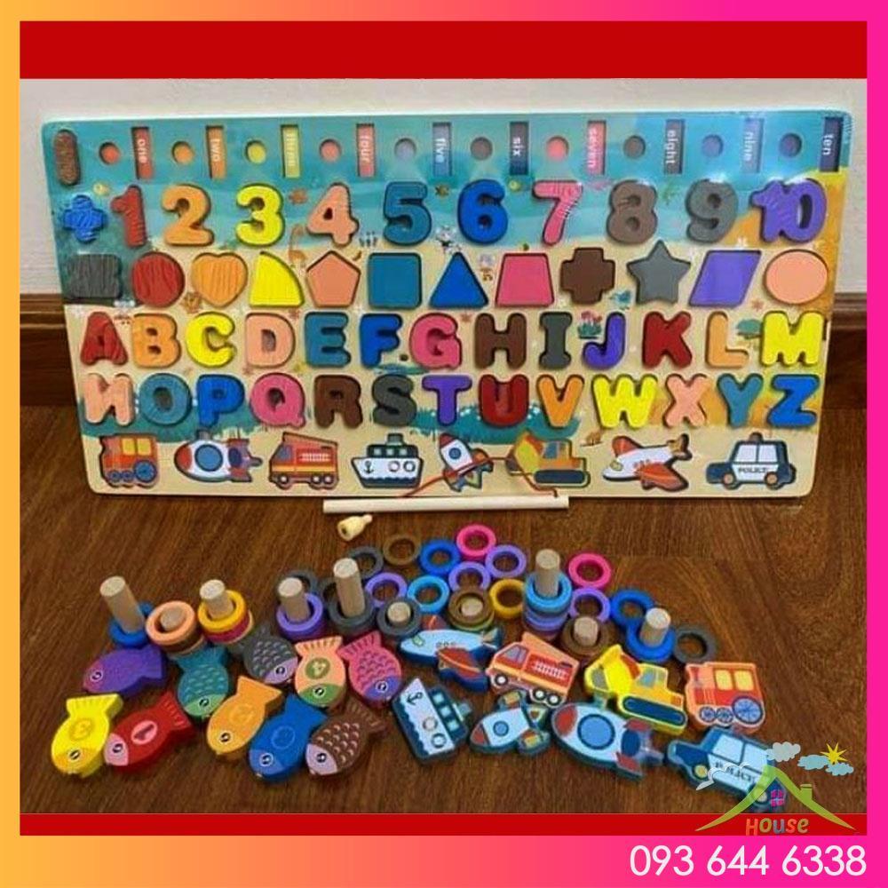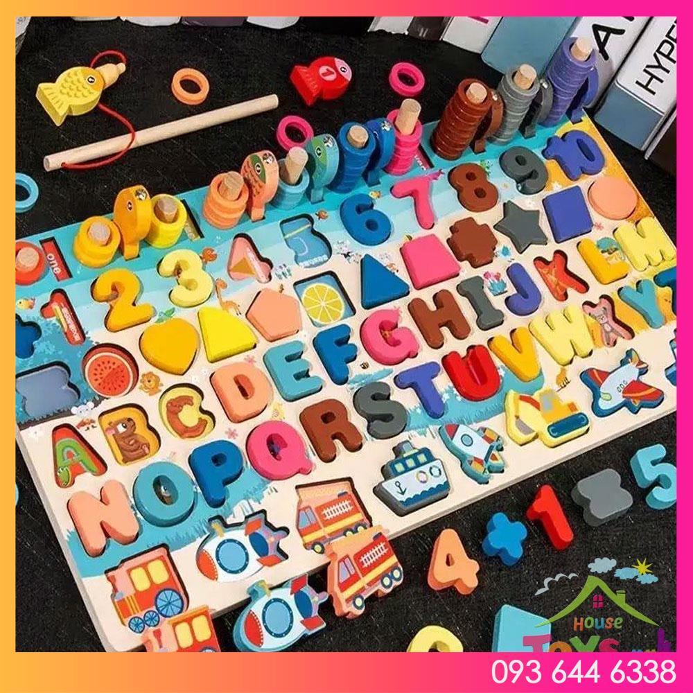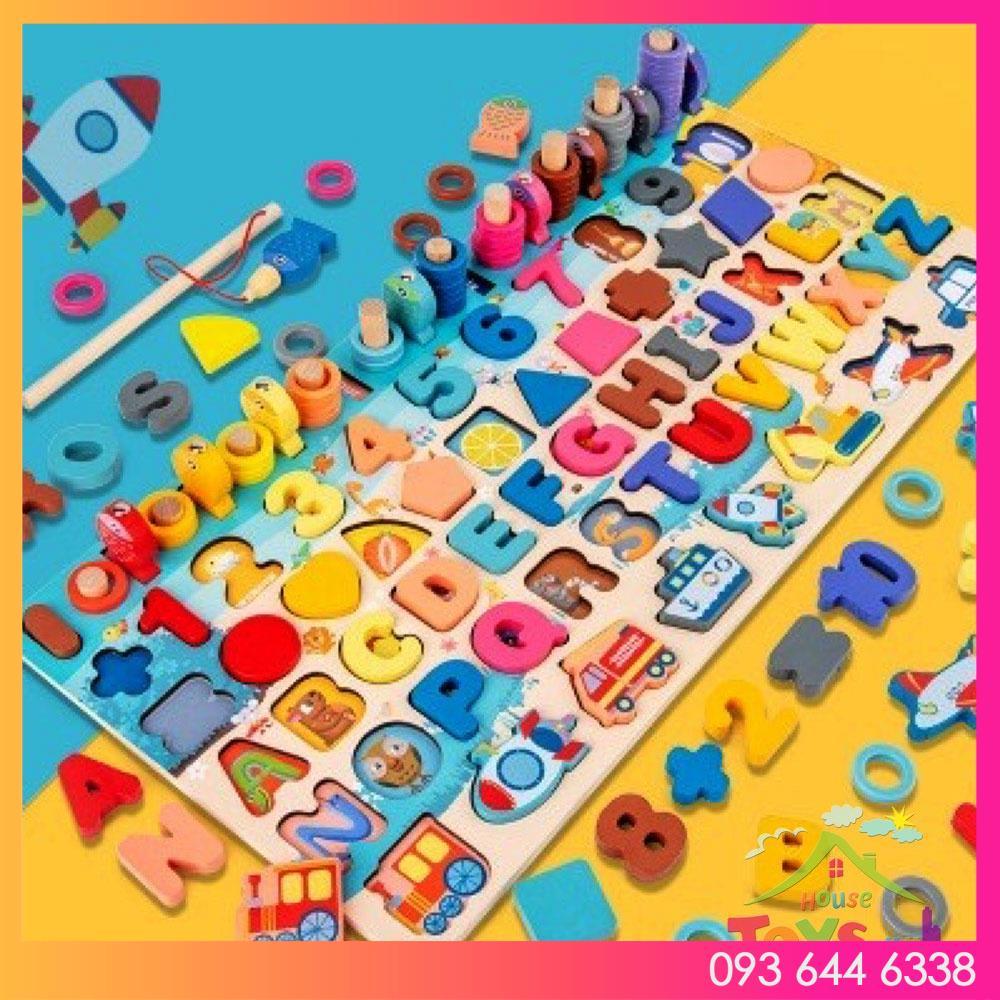 Bảng gỗ đồ chơi 6in1 và 7in1 loại đẹp (ở trong mỗi ô chữ đều có hình màu sắc bắt mắt)